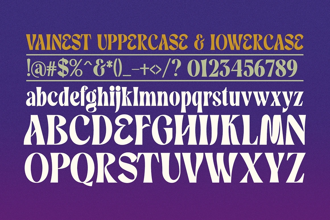 Vainest Serif vintage style font It has a modern and retro look. Comes with different styles, really helps to create amazing logos, quotes, posts, blog posts. branding projects, magazine imagery, book and billboard displays, and more.