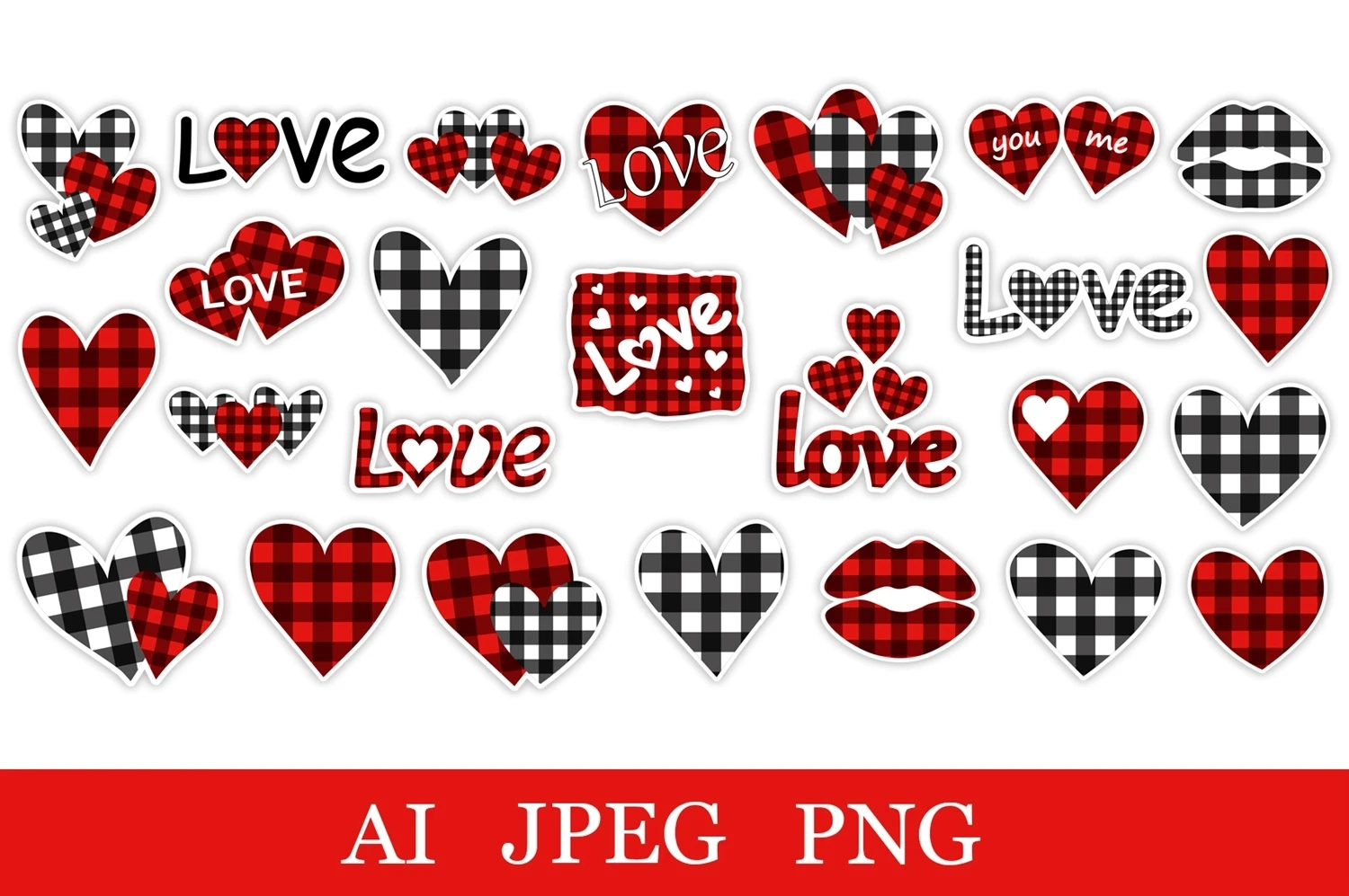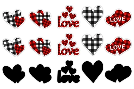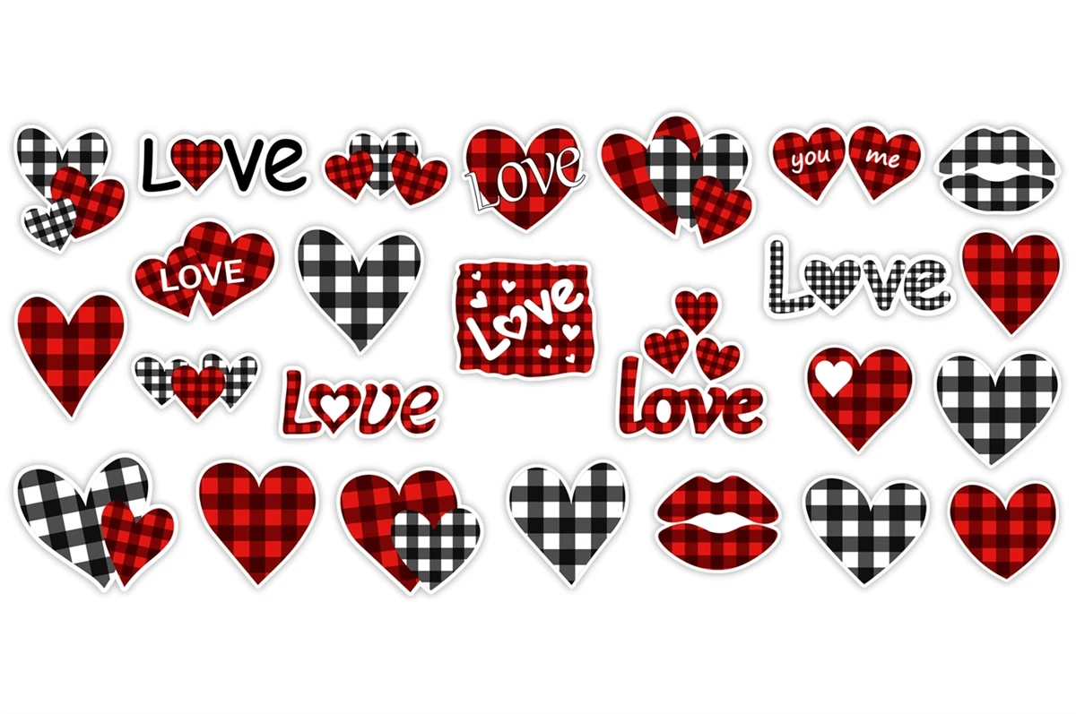 Valentine Buffalo plaid Stickers. Hearts Buffalo Sticker PNG