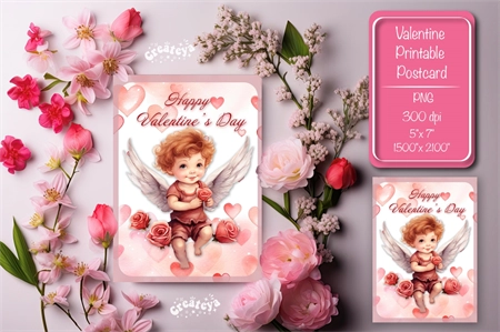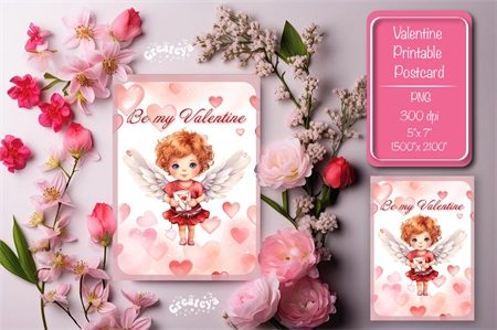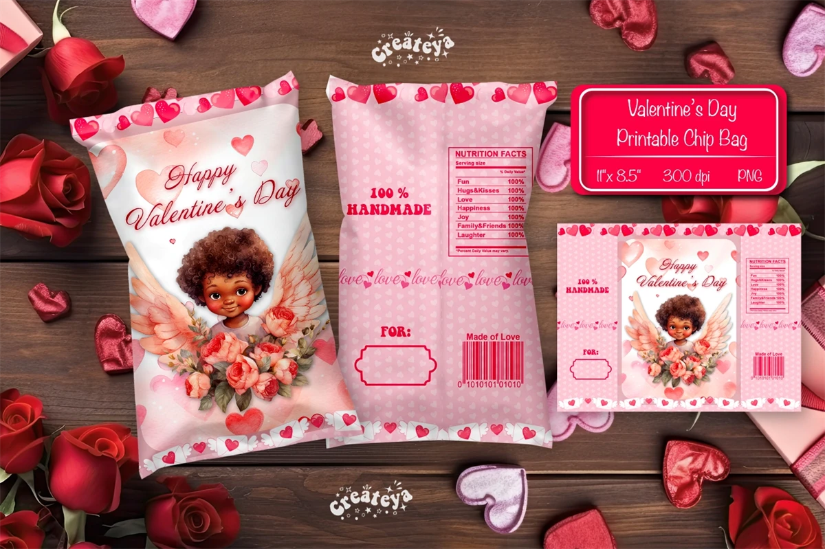 Valentine Chip Bag template for party favors it's 8.511" PNG at 300 DPI. Designed with watercolor Angels. The adorable Angel's Valentine gift design adds love to your celebrations!