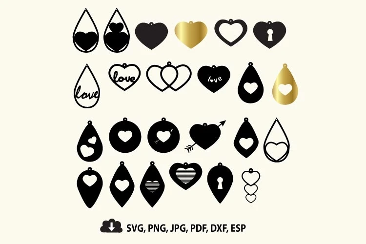 Valentine Love Earring Svg, Earring Svg, Love Earring Clipart, Valentine's Day Earring, Leather Earrings, Heart Earring, Cut file, Cricut