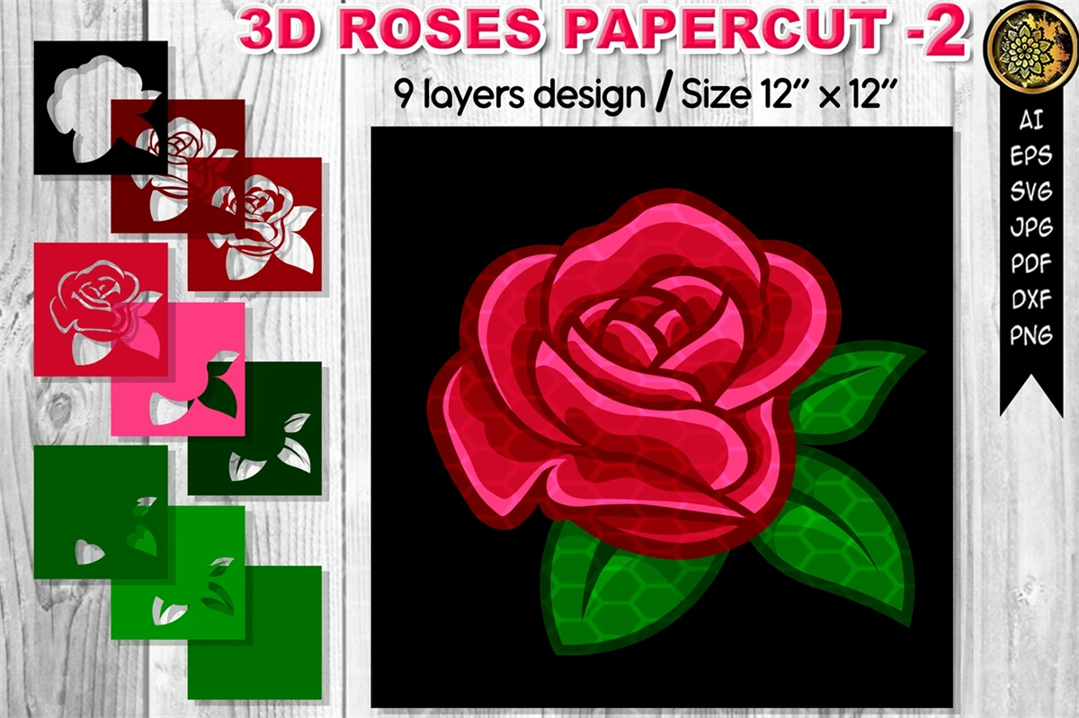 3D Valentine Roses Multi-Layered Design Flower SVG Clipart Cut Files in Pink & Red & Black Tone color for your creative DIY projects, and Home Decorations. Perfect for the papercut, scrapbooking, card stock, home decor, and other DIY projects. Options are endless!