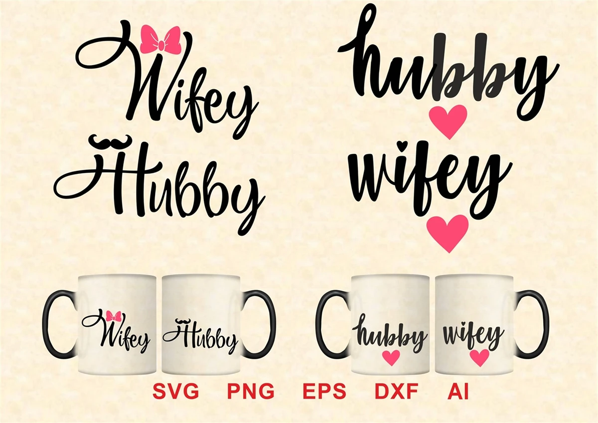 Valentines Day Gift - Bow tie husband wife - Hubby Wifey Svg