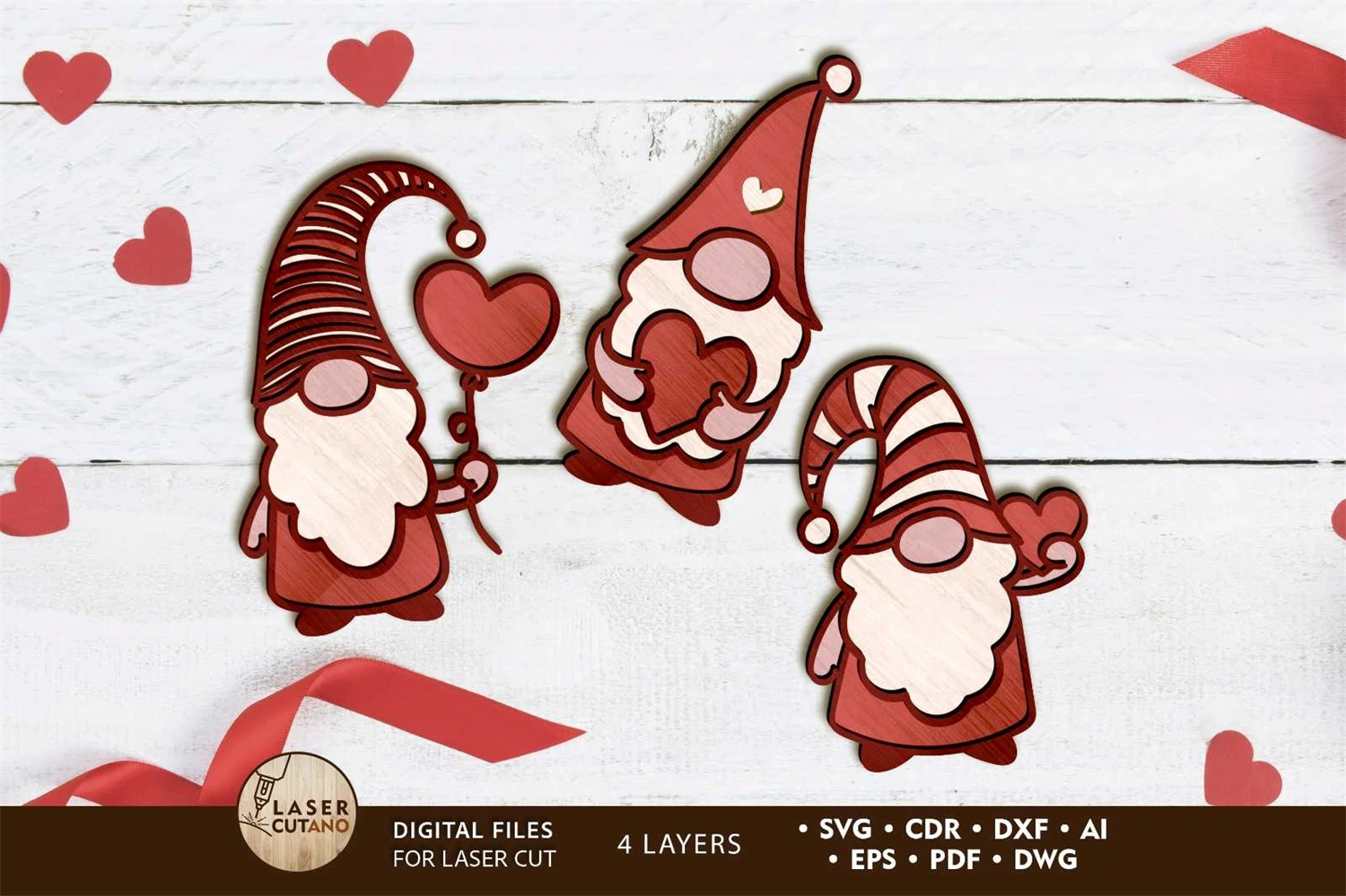 Valentine's Day GNOMES Digital multilayer layout files are specially prepared for the laser cut, CNC router machine and other cutting machines.
