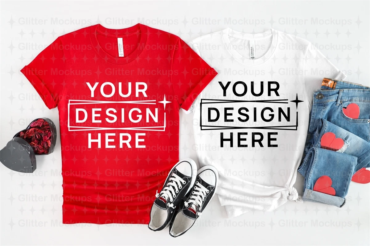 Valentine's Day Red Bella Canvas 3001 Mockup, Couple Tee
