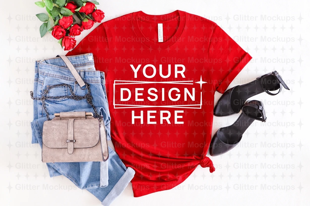 Valentine's Day Red Bella Canvas 3001 Mockup, Love, Png