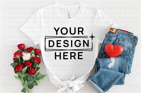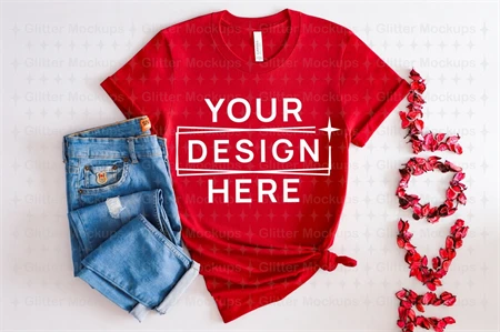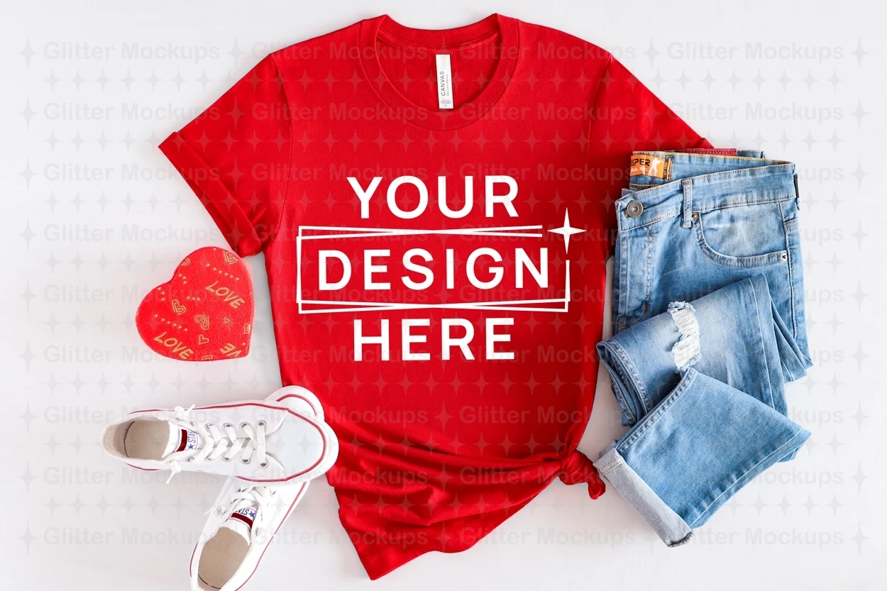 Valentine's Day Red Bella Canvas 3001 Mockup, Unisex Tee