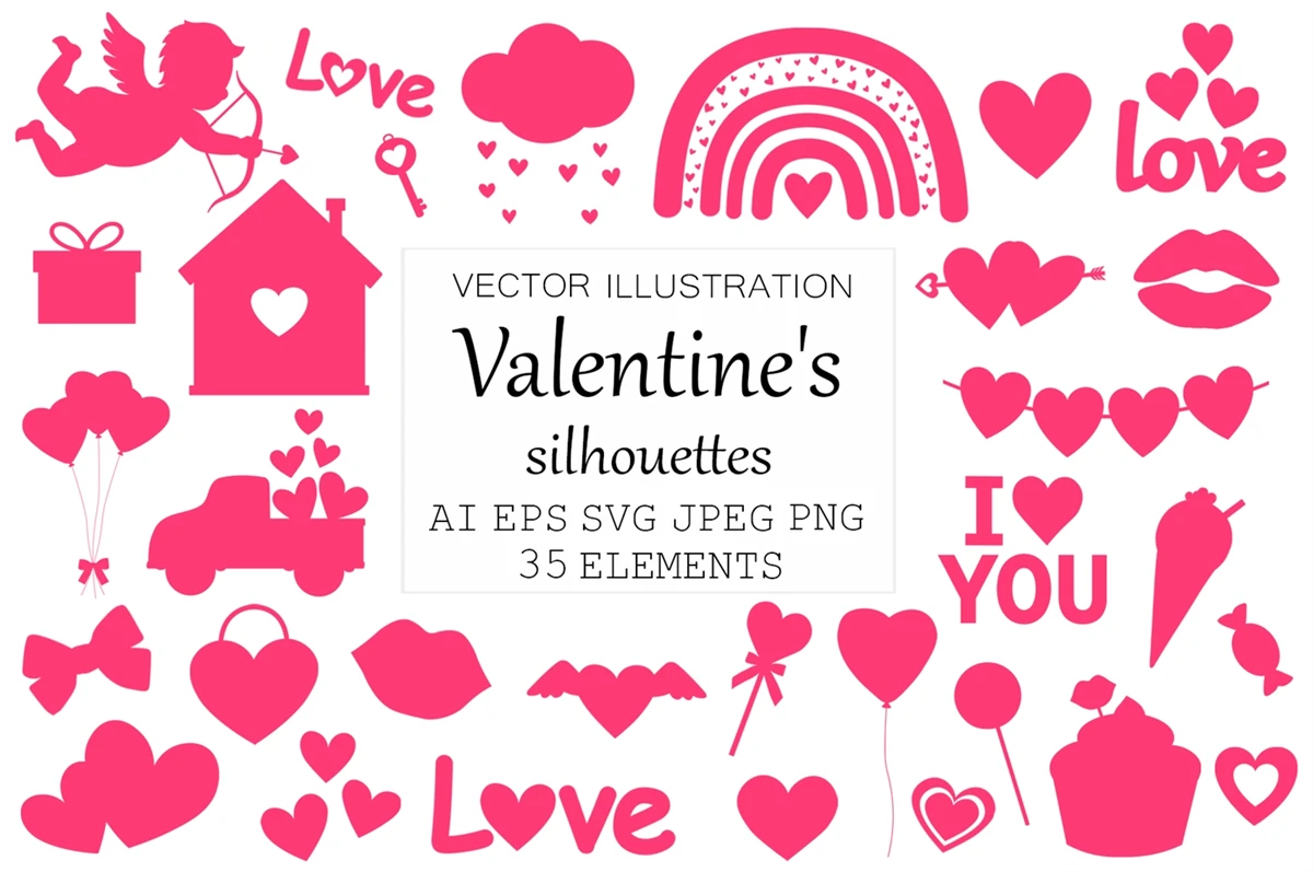 Valentine's day silhouettes. Heart silhouettes. Heart SVG