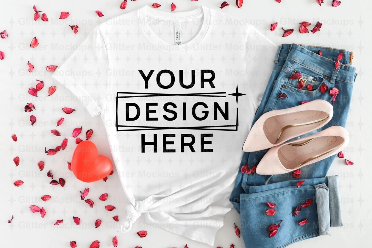 Valentine's Day White Bella Canvas 3001 Mockup, Love, Png