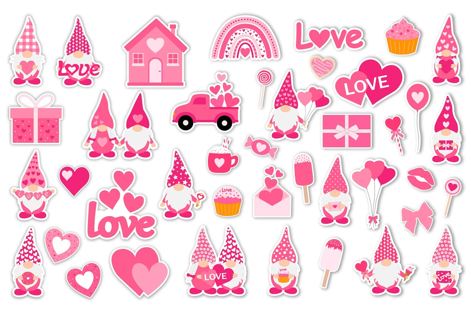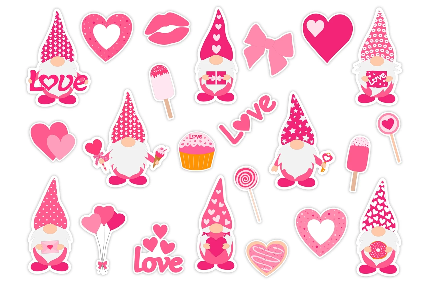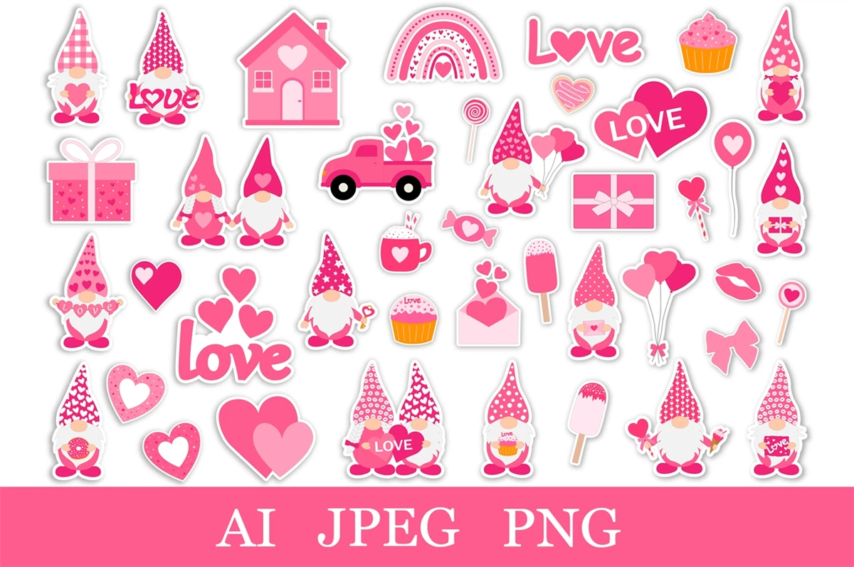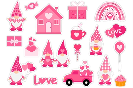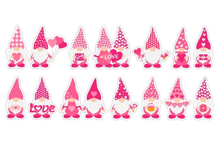 Valentine's Gnomes Stickers bundle. Stickers Printable PNG