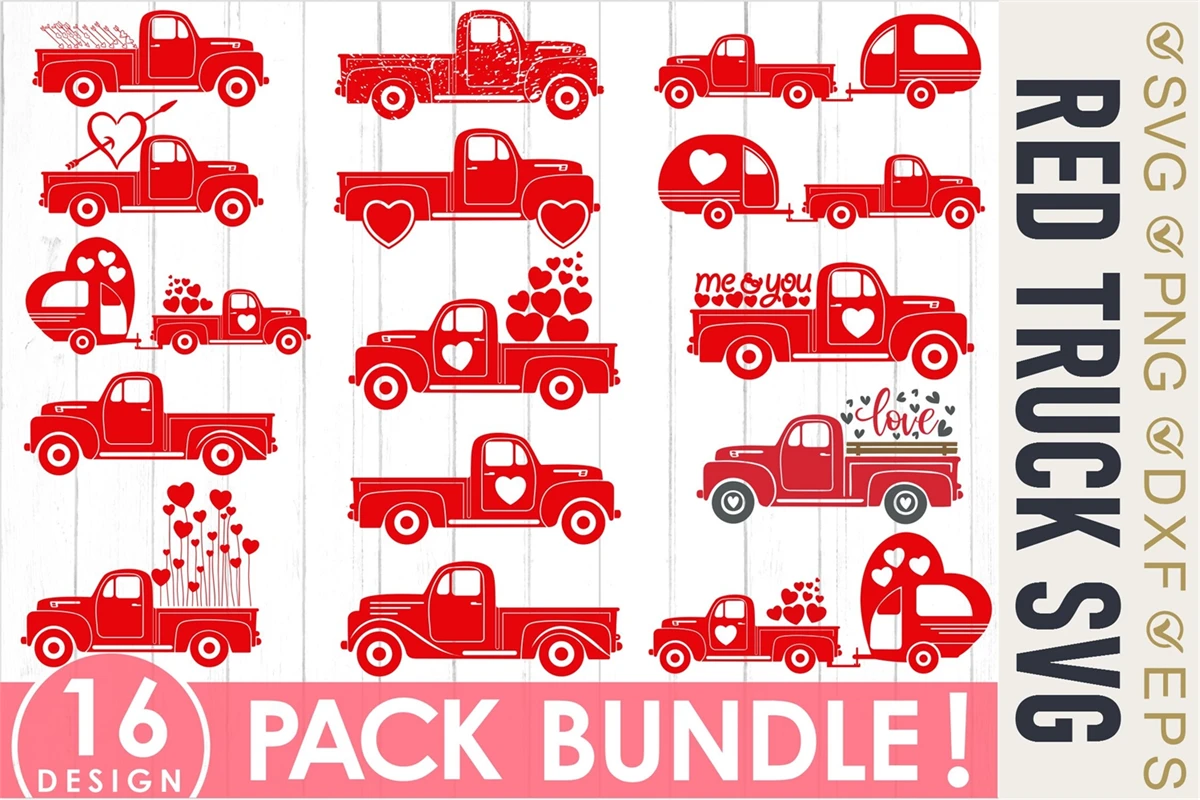 Valentines Red Truck Svg Bundle, Valentines Day Svg,Love Svg