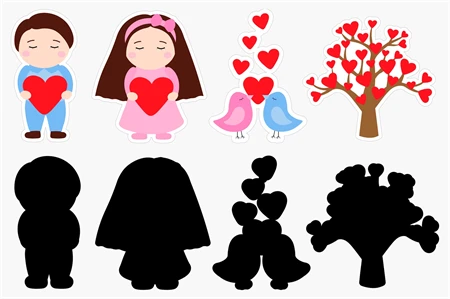 - 16 individual JPG approx 5 inches in size, white boarders, thin gray line for hand cut with scissors, 300 dpi