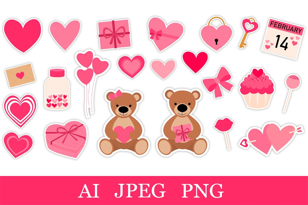 Valentine's Stickers bundle. Valentine's Stickers Printable