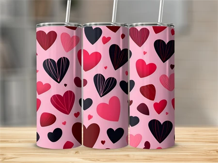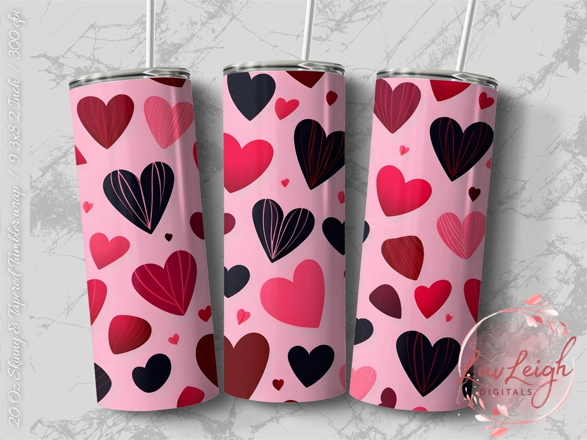 Valentine's Tumbler wrap, Hearts Pattern wrap png