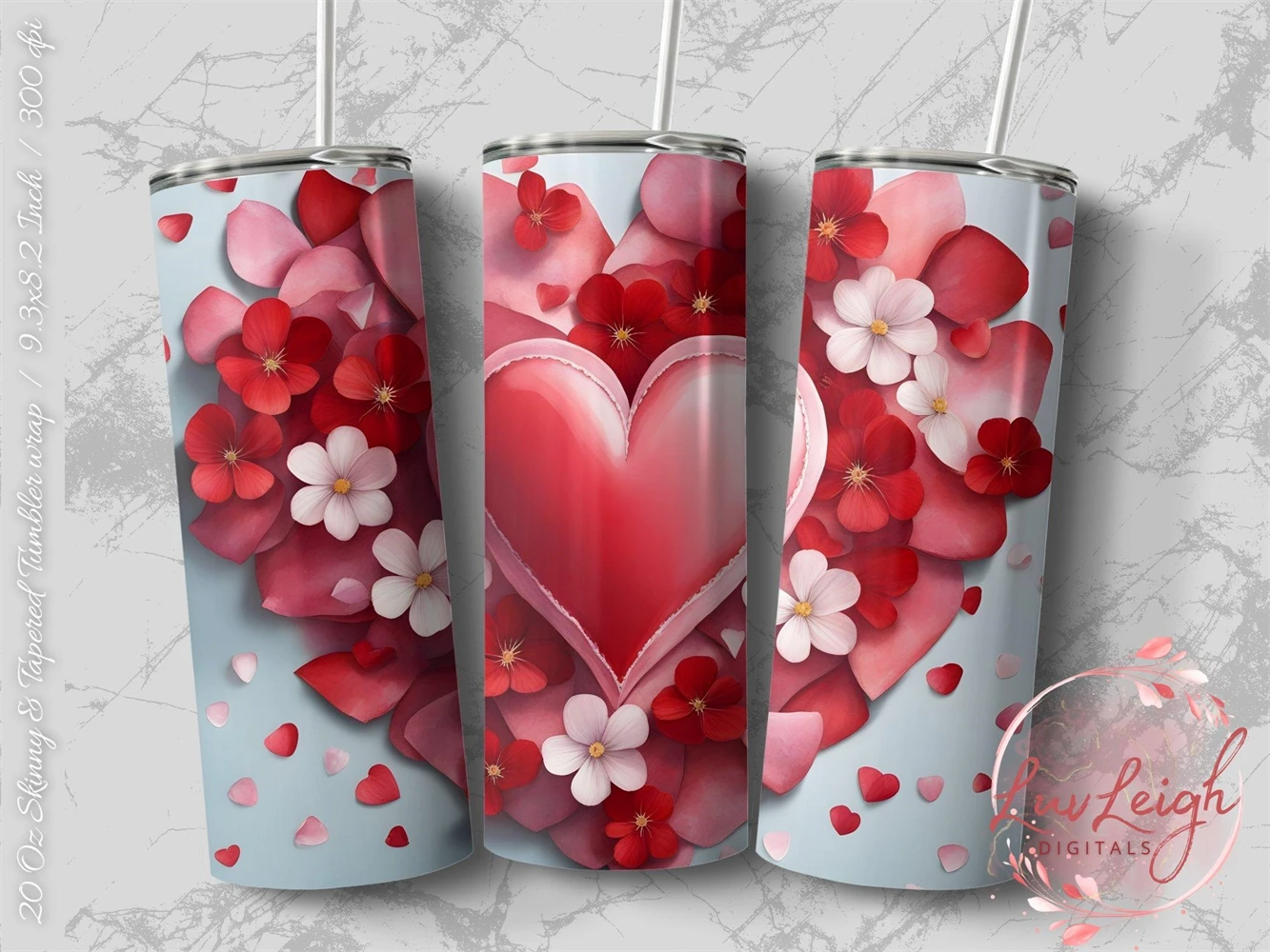 Valentine's Tumbler wrap, Hearts Pattern wrap png