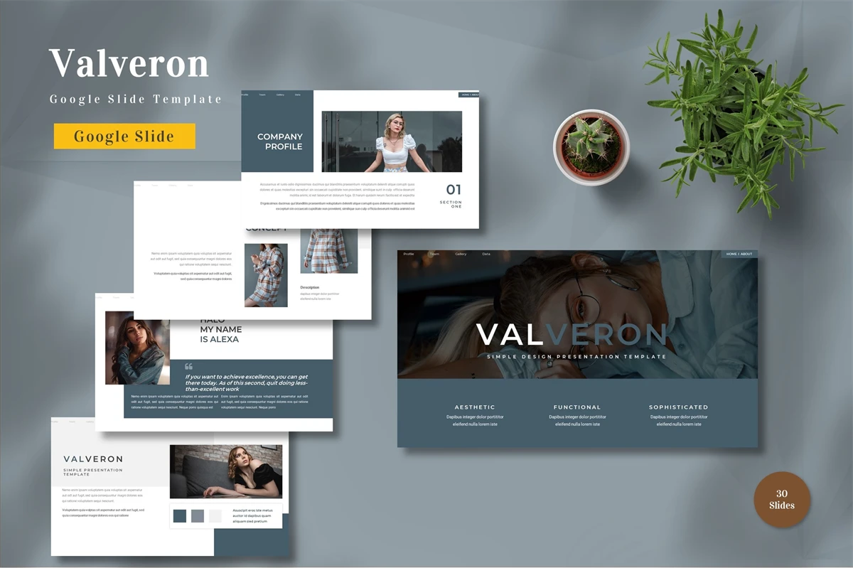 Get it now! **Valveron - Google Slide Template** for All Business and Personal Needs All elements on this template are editable; input your content, replace your image with a placeholder, change the color, and all presentations include an animated slide to present your slides.