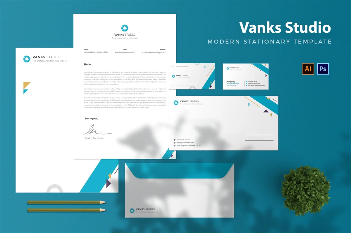 Vanks - Stationary. This template is great for your business and this design will make your interested, elegant, and easily editable according to your needs. I hope you enjoy for this stationary.