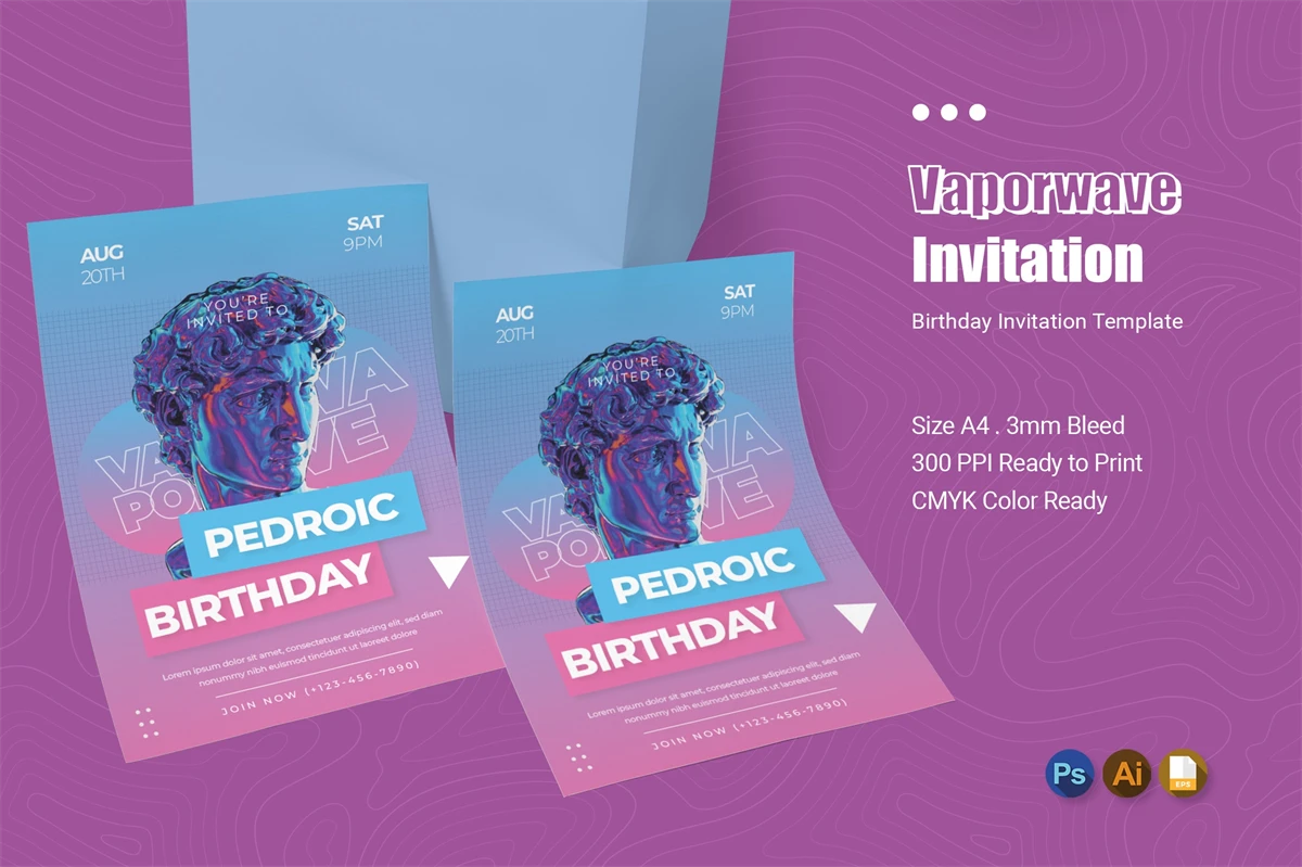 Of course you want to invite friends to your birthday party with the best invitations! Impress the invited guests with your style of invitation, by using this invitation card template. You can easily edit & customize each of the designs because every component is well organized and editable.