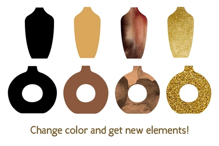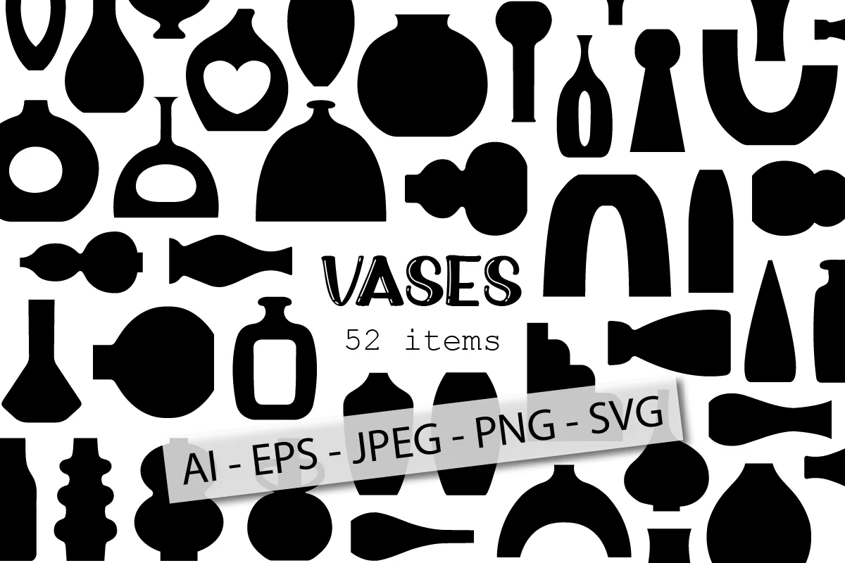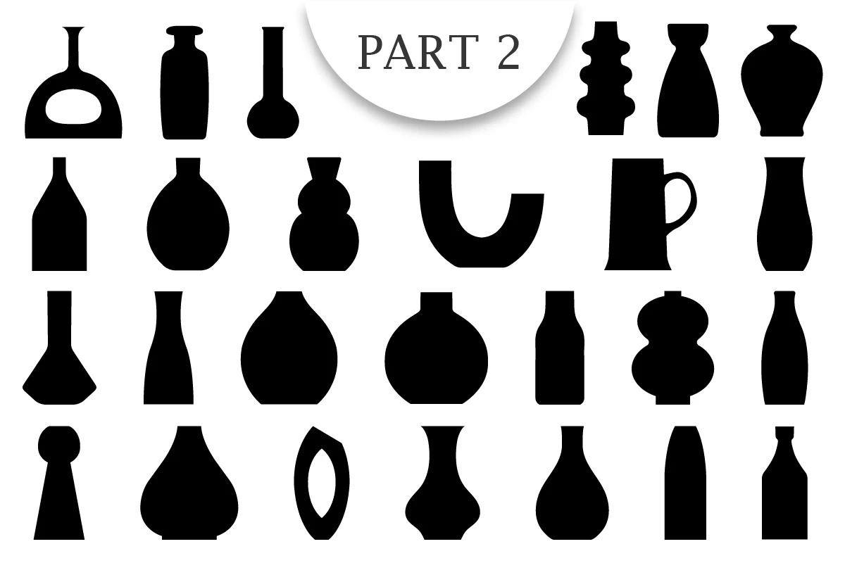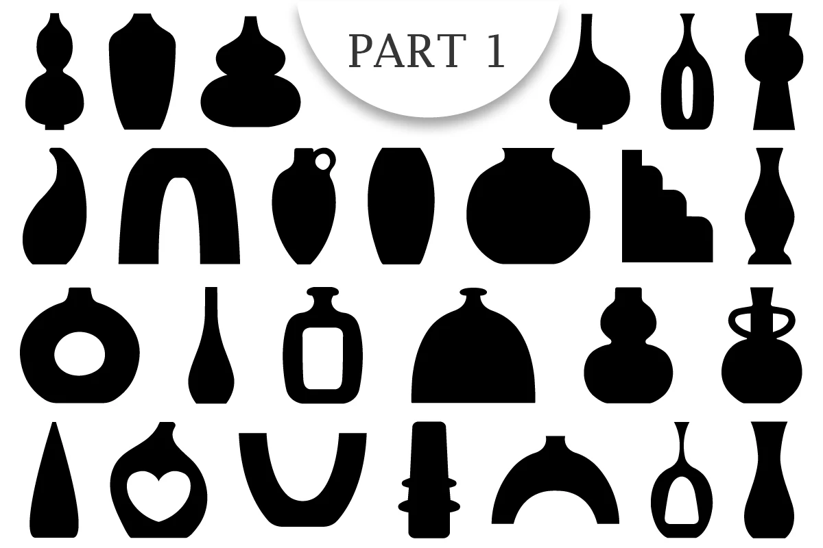 In this product: vector collection of modern vases in black. Illustrations in style of flat, boho, minimalism, scandi, japandi, simple. Clipart in PNG, EPS, SVG format. For creating stylish prints, postcards, stickers, posters, business cards, logos, icons. For packaging design, digital paper, scrapbooking, craft. Change colors of elements and get new options!