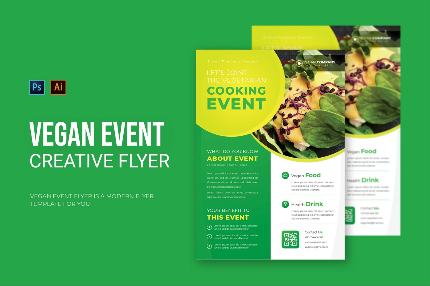Vegan Event - Flyer. This Flyer template is designed for your company's business needs. very clean and elegant, and also easily edited and adjusted to your liking