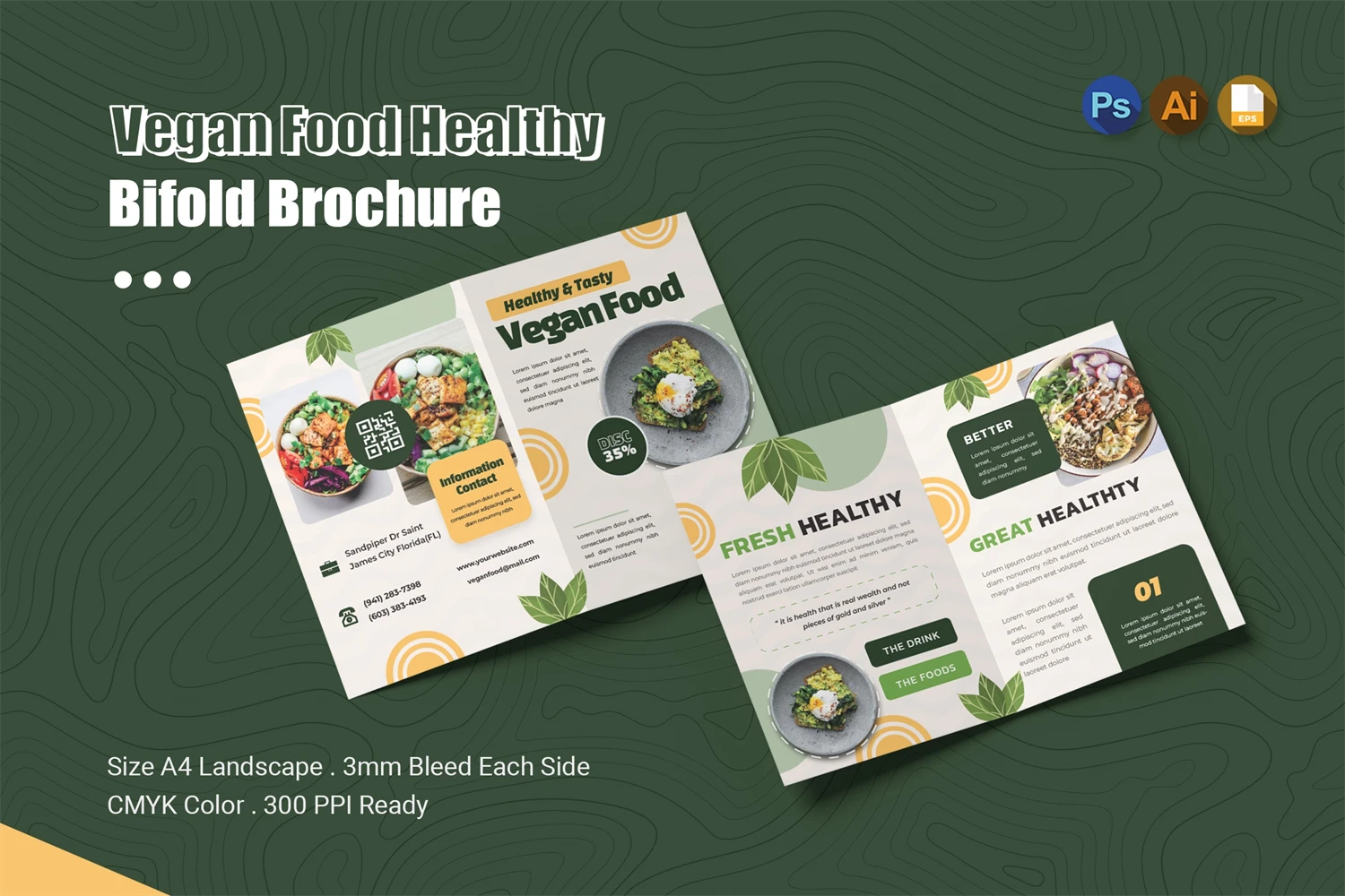**Vegan Food Healthy Bifold Brochure**
