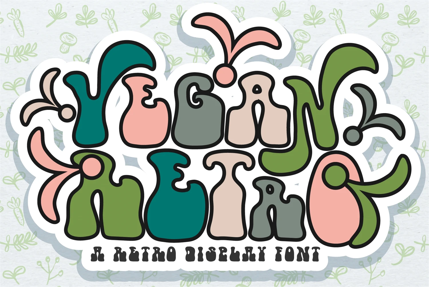 Vegan Retro is a playful and lively display typeface that radiates fun and energy. With its bouncy letterforms and dynamic strokes, it captures the essence of retro grooviness. Ideal for headlines, posters, and branding projects.