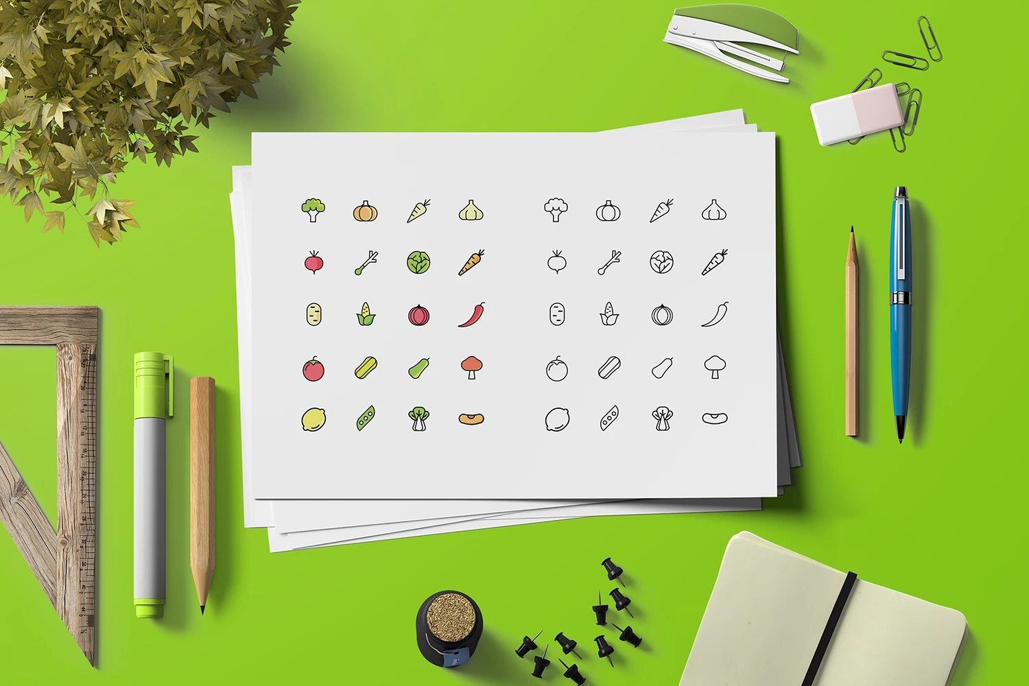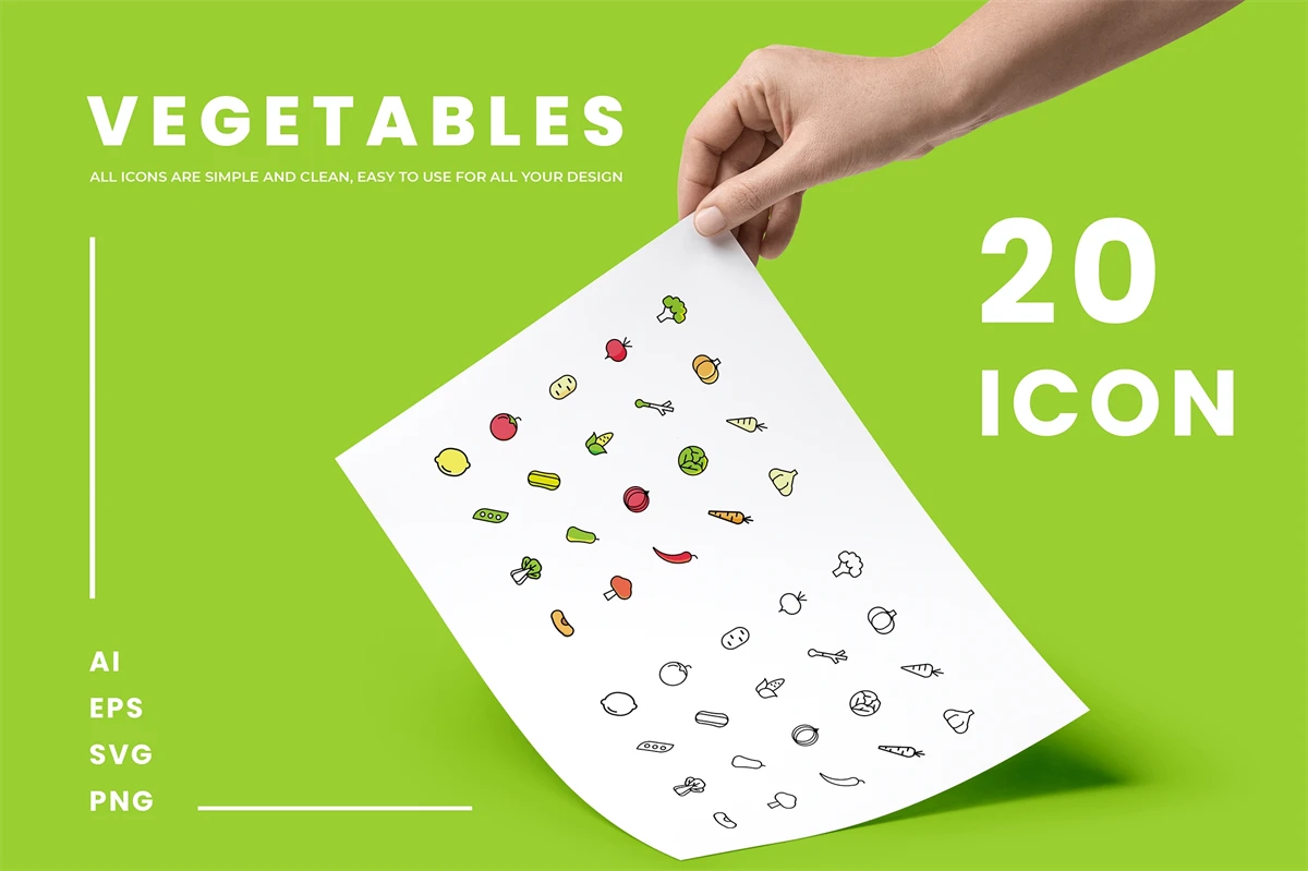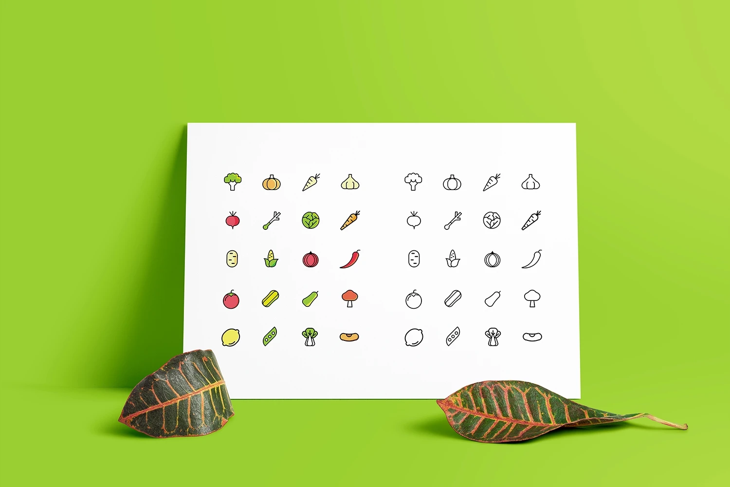 Don't miss it Vegetables - Icons This professional Icons pack, high quality, for professional designers, easy to use, fully editable & customizable in Adobe Illustrator