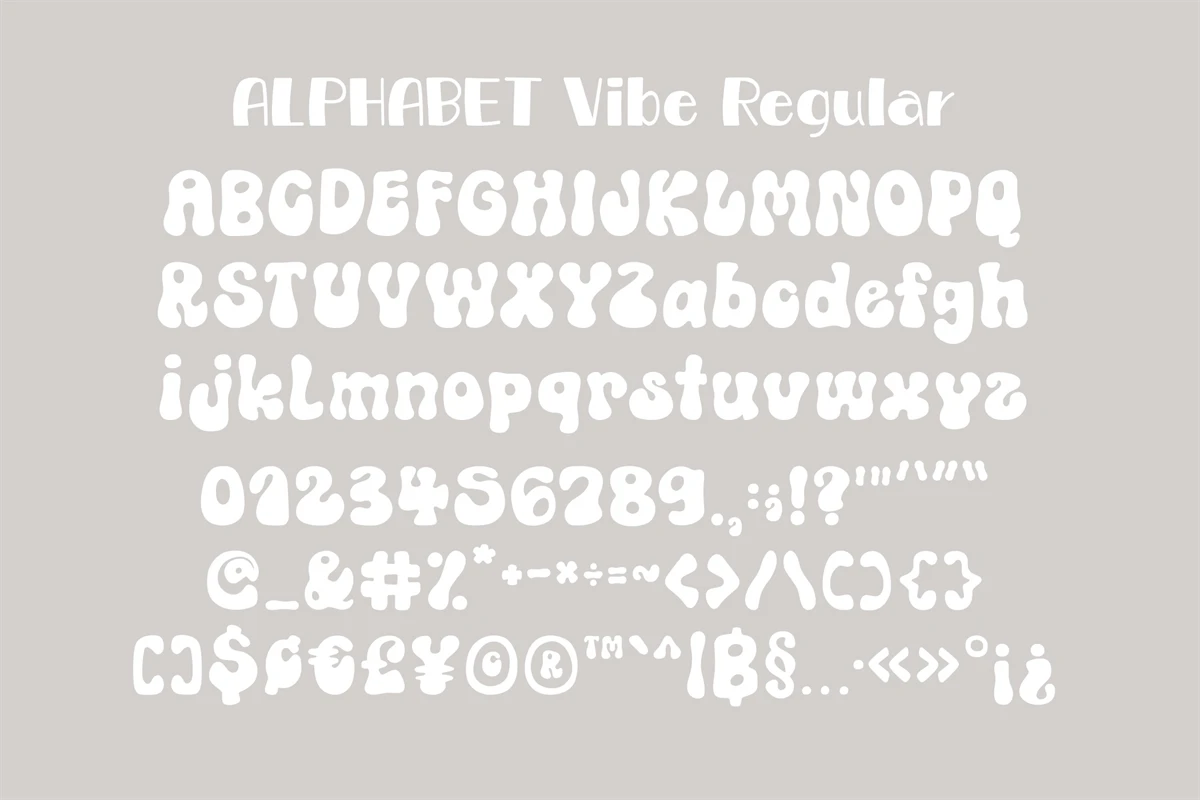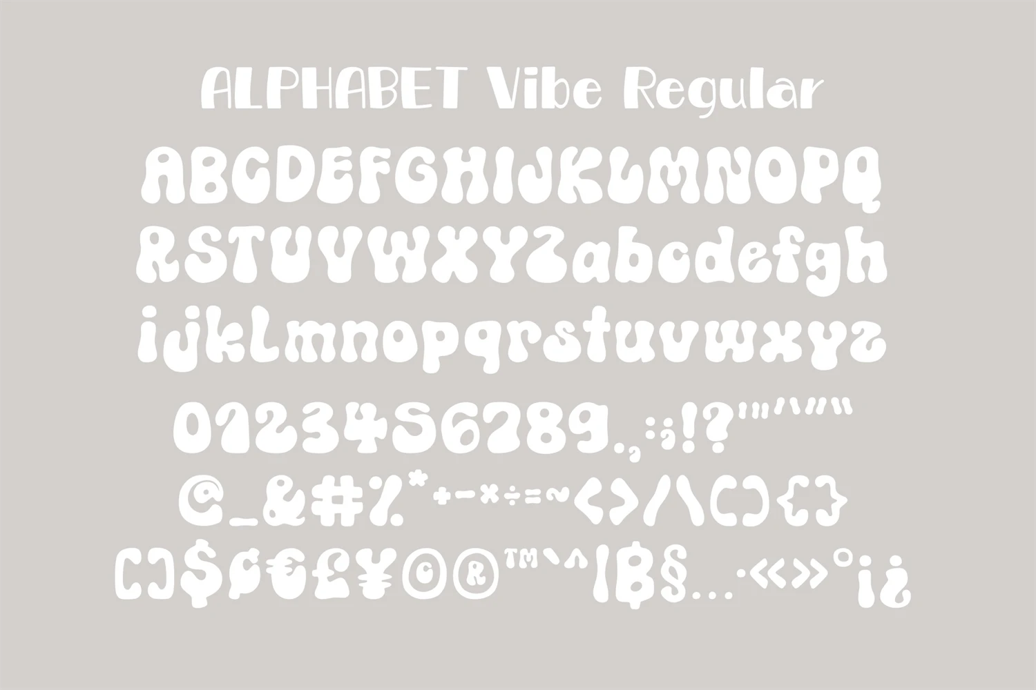Vibe is an exuberant display font 3 style that will fill your designs with cheerfulness! Use it on covers, posters, spring designs, marketing materials, or anything that needs to pop!
