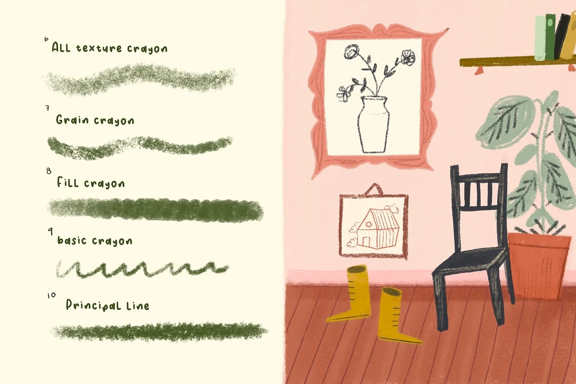 -3 line crayons to detail or sketch 12 texture and fill crayons
