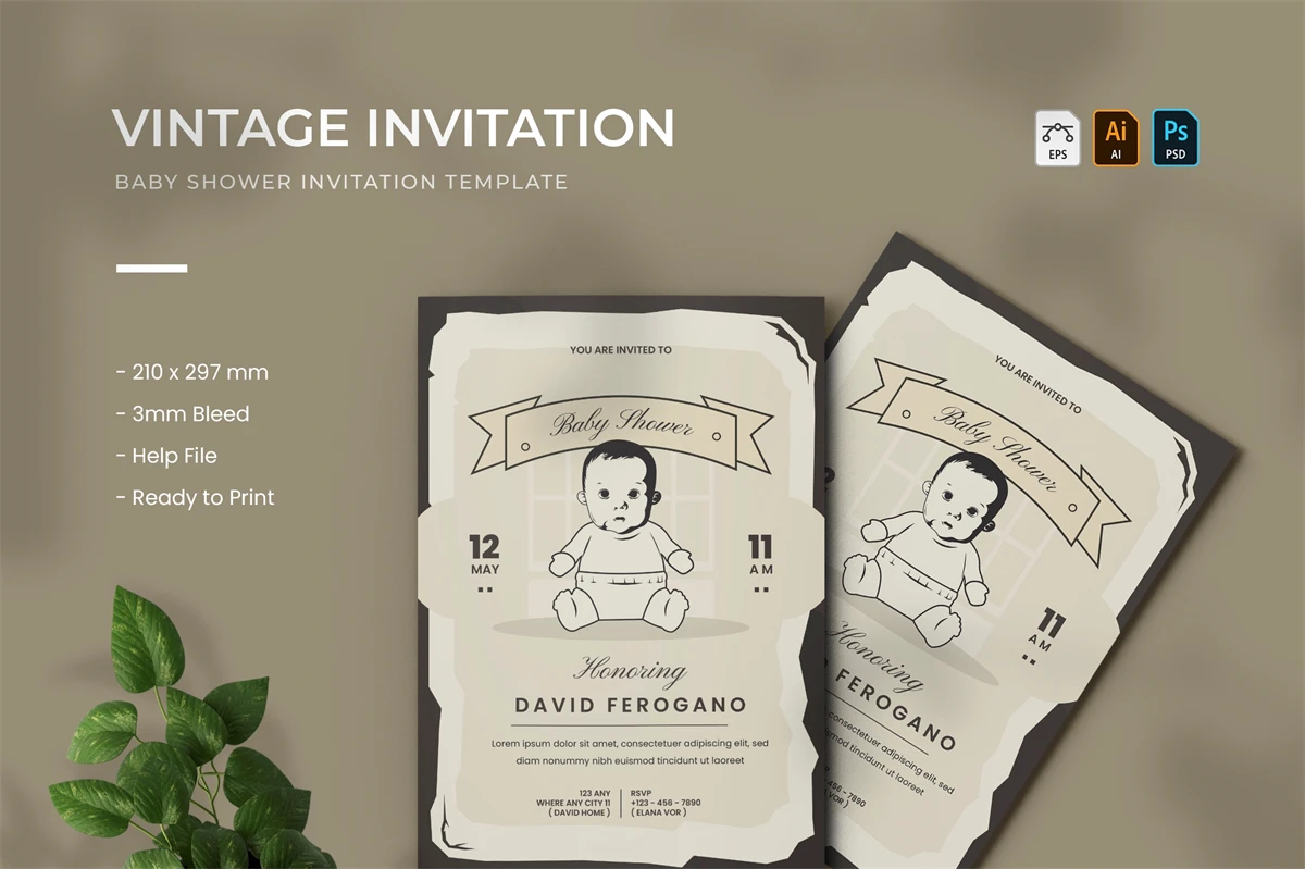 Vintage - Baby Shower Invitation
