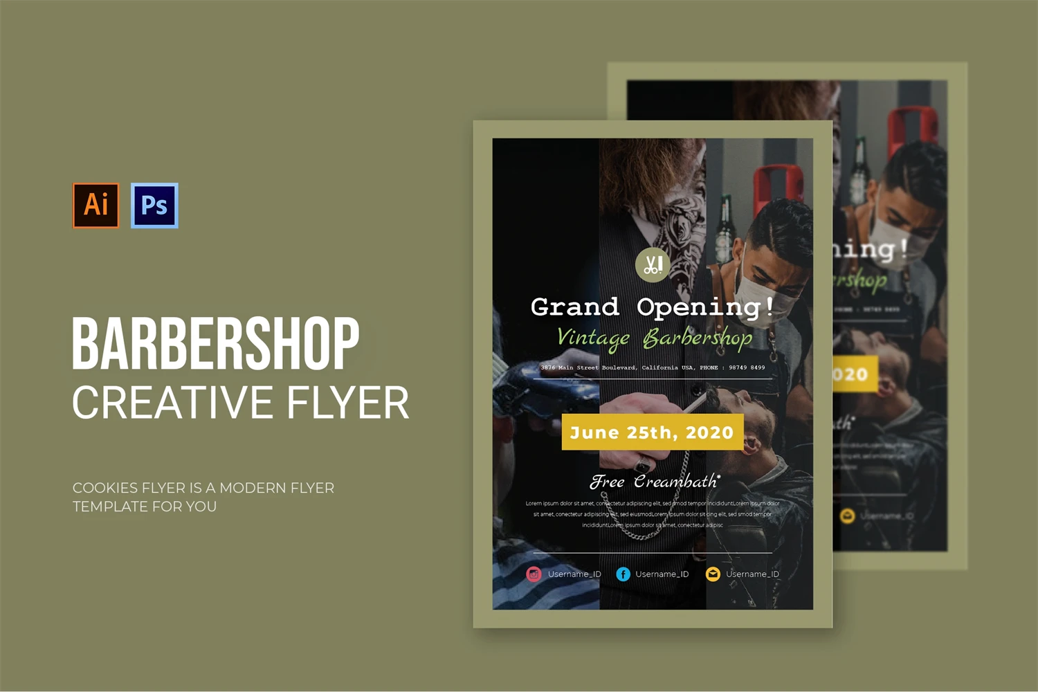 Vintage Barbershop - Flyer. This Flyer template is designed for your company's business needs. very clean and elegant, and also easily edited and adjusted to your liking
