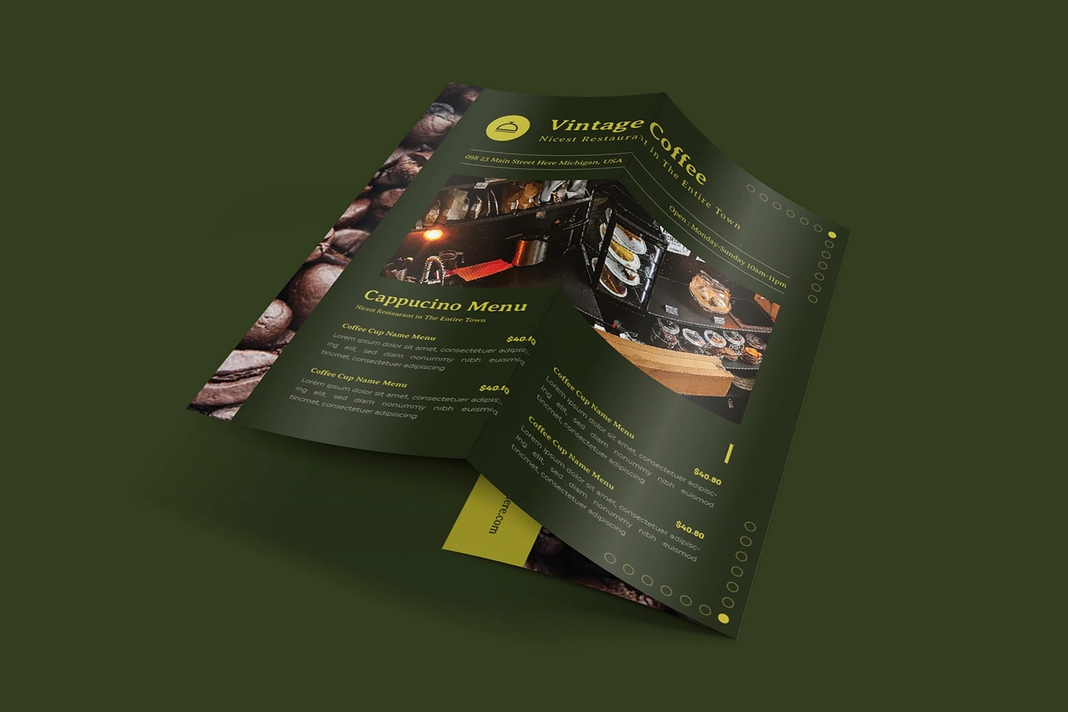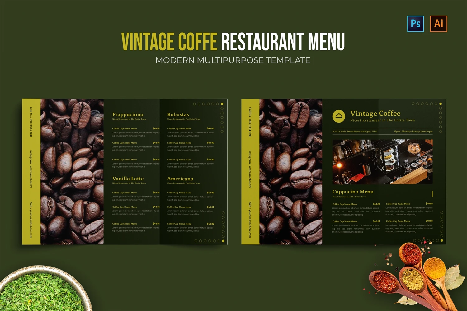 Vintage Coffe - Restaurant Menu. This template is great for your business and will make your customers interested, elegant, and easily editable according to your needs, this restaurant menu is perfect for, promos, cafes, hotels, resort shops online. etc. I hope you enjoy this restaurant menu