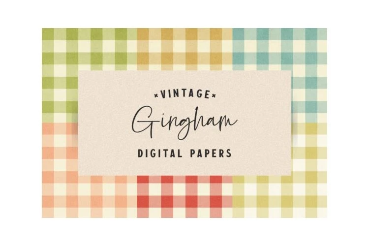 Six Free Vintage Gingham Plaid Digital Papers Pack 12x12 in size