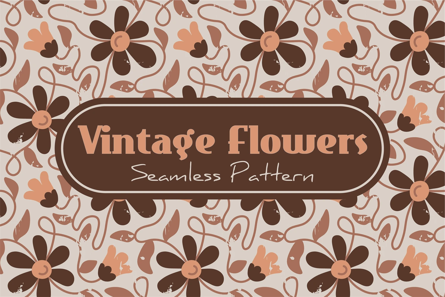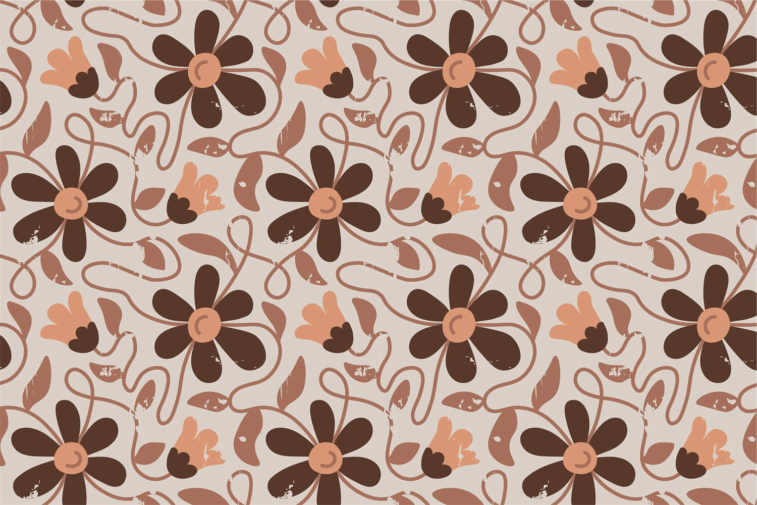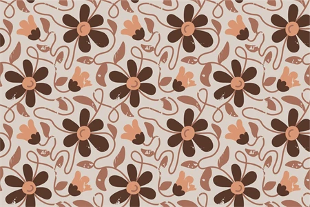 Trendy wavy floral ornament with brown pastel colors. Meadow seamless pattern. Vintage chamomile endless background. Shabby chic old-fashioned design. Retro aesthetics. Ornate brown wavy chamomile blossoms and leaves. Repeat vector illustration for fabric, textile, wallpaper, greeting card, tote bag, tumbler, wrapping paper, decoupage, scrapbooking.