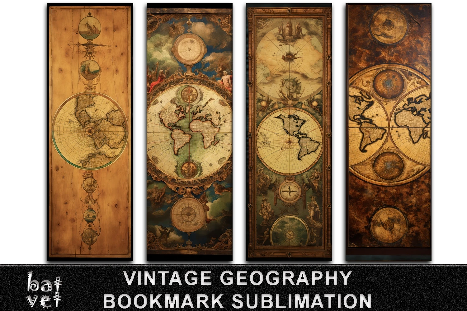Vintage Geography Bookmark PNG / World Map Bookmark Sublimation
