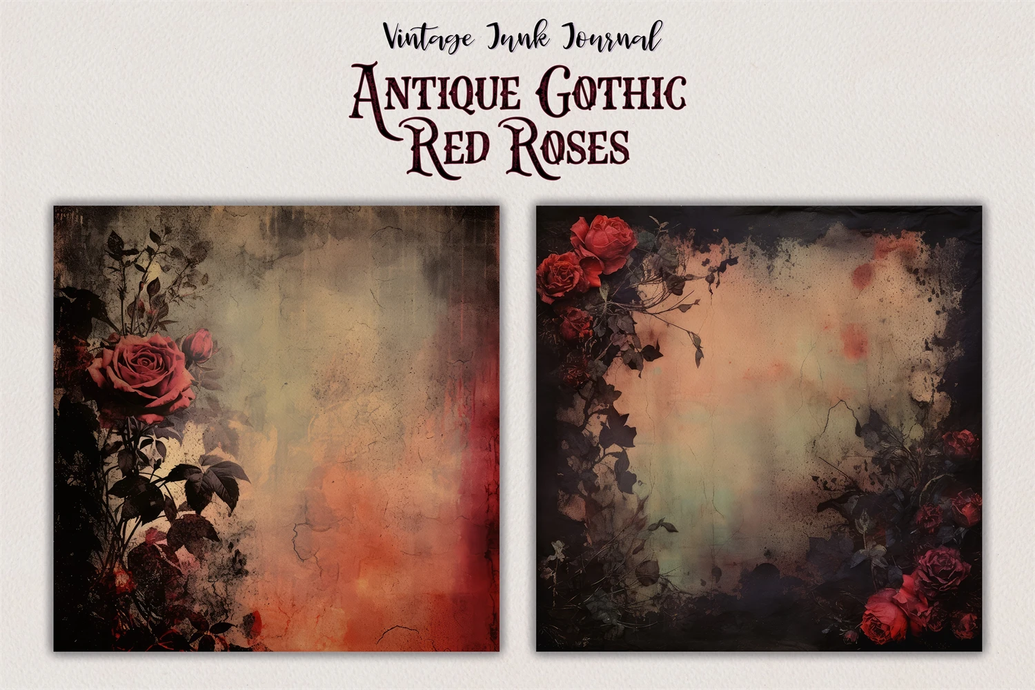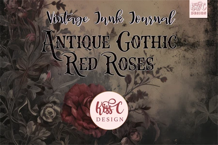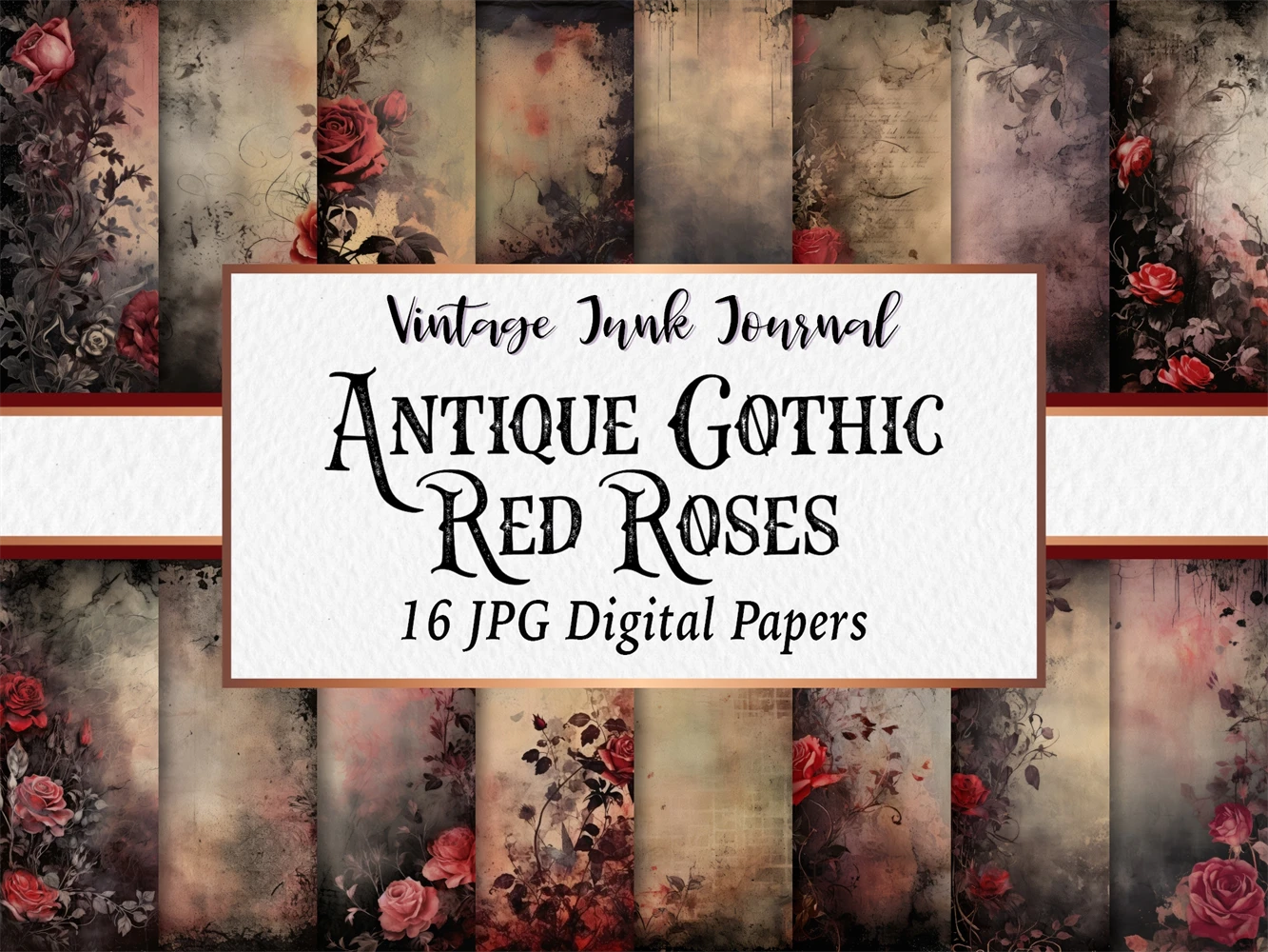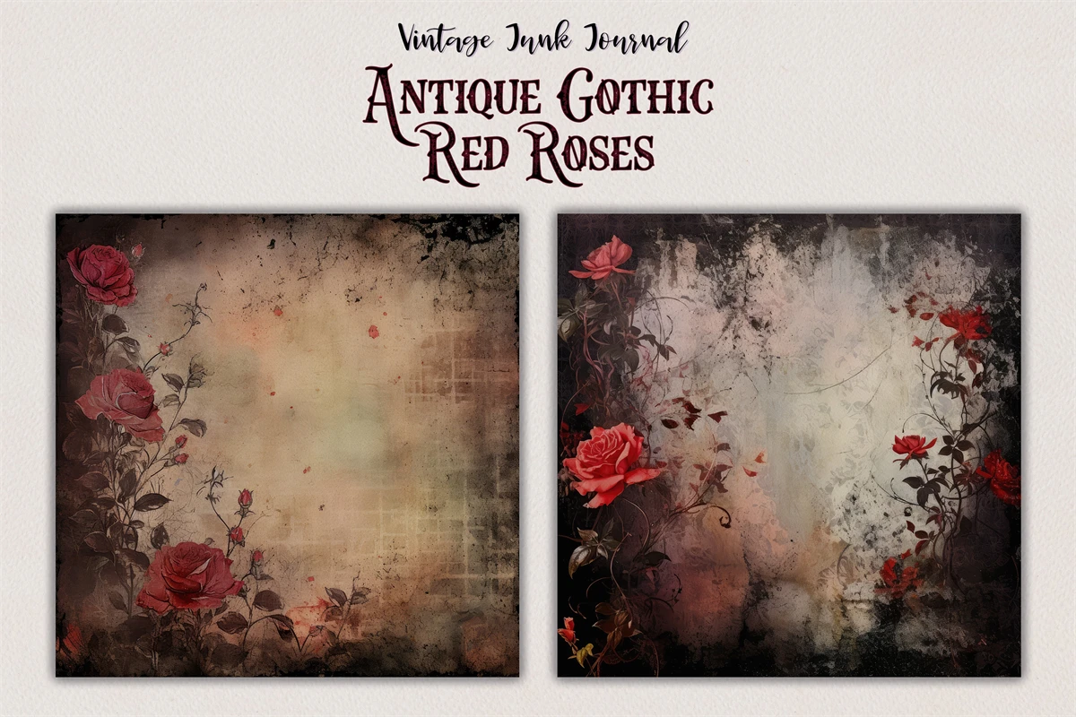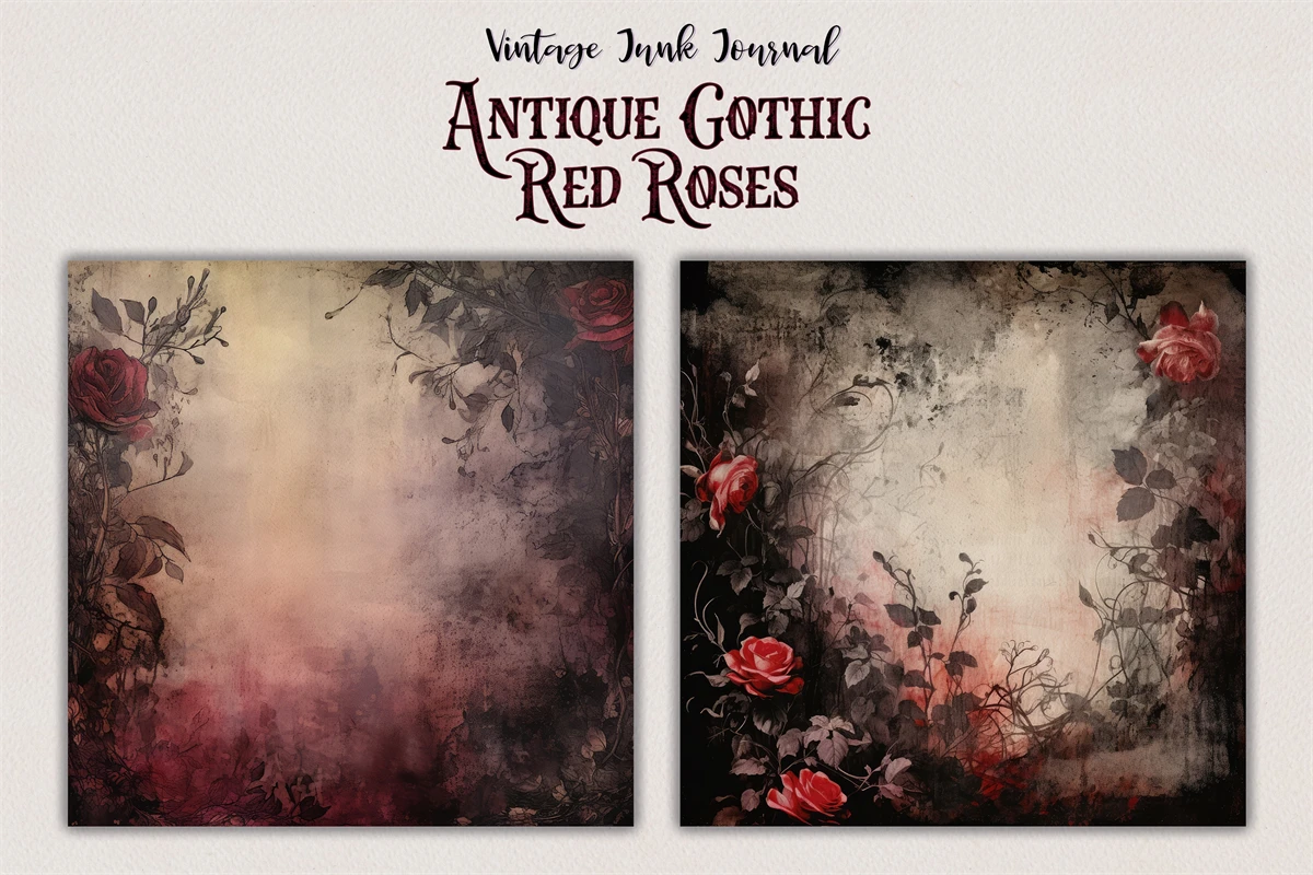 Antique junk journal digital papers - Vintage Gothic Red Roses Dark Background for wallpaper, planner, journal, Scrapbooking, and more.