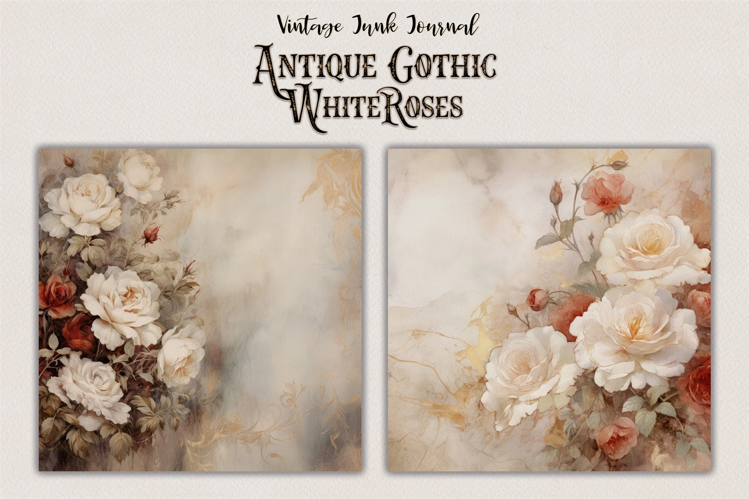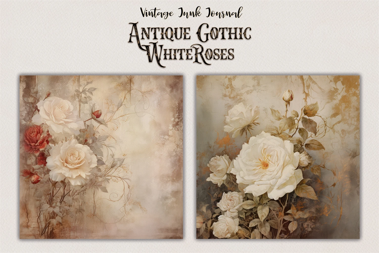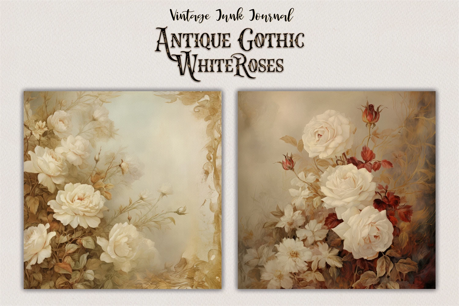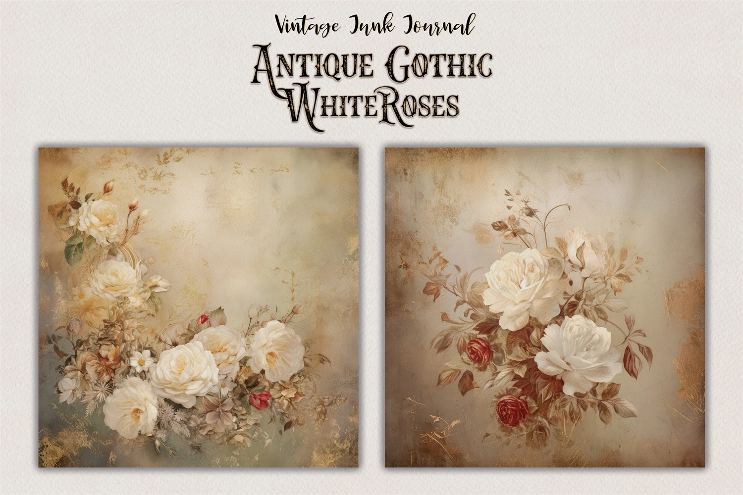 Antique junk journal digital paper - Vintage White Roses Dream Background for wallpaper, planner, journal, Scrapbooking, and more.