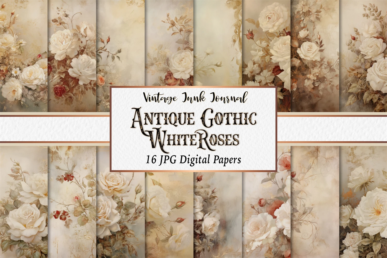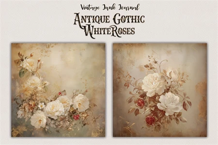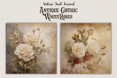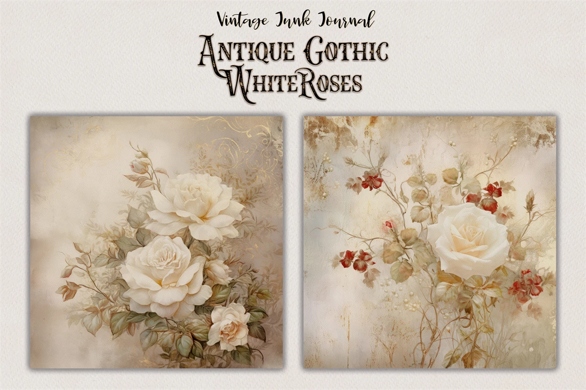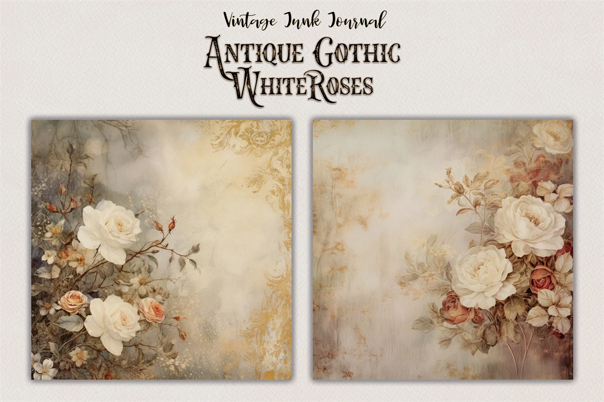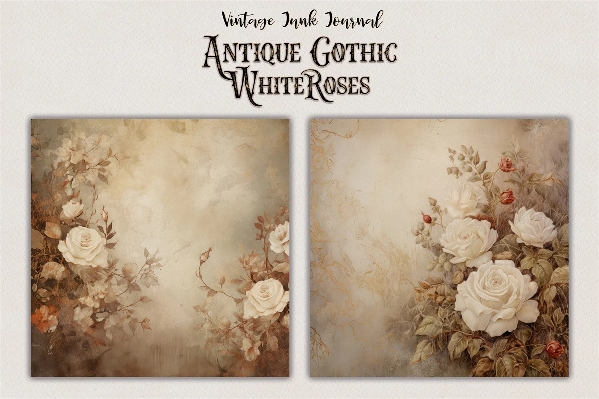 Antique junk journal digital paper - Vintage White Roses Dream Background for wallpaper, planner, journal, Scrapbooking, and more.