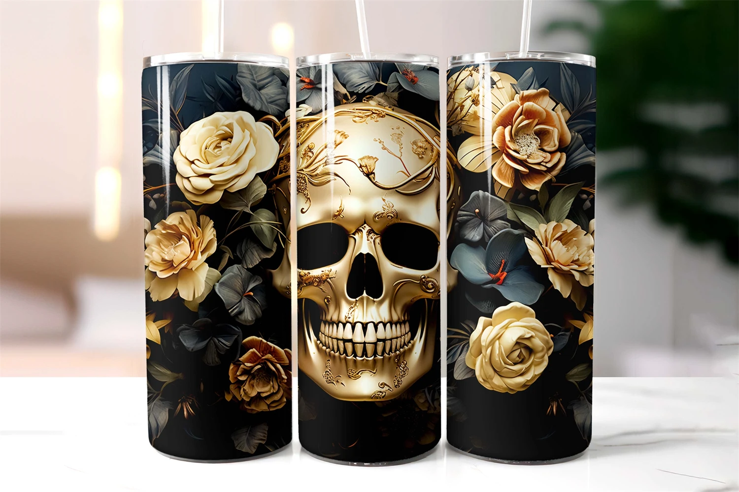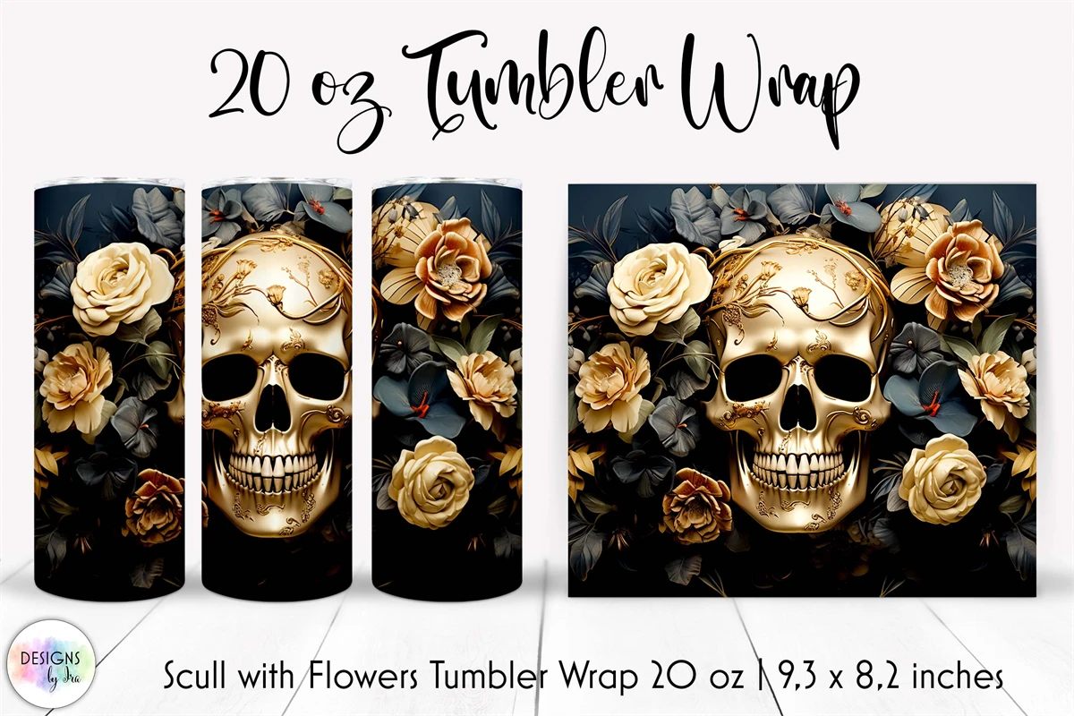 VINTAGE FLORAL SCULL TUMBLER WRAP.