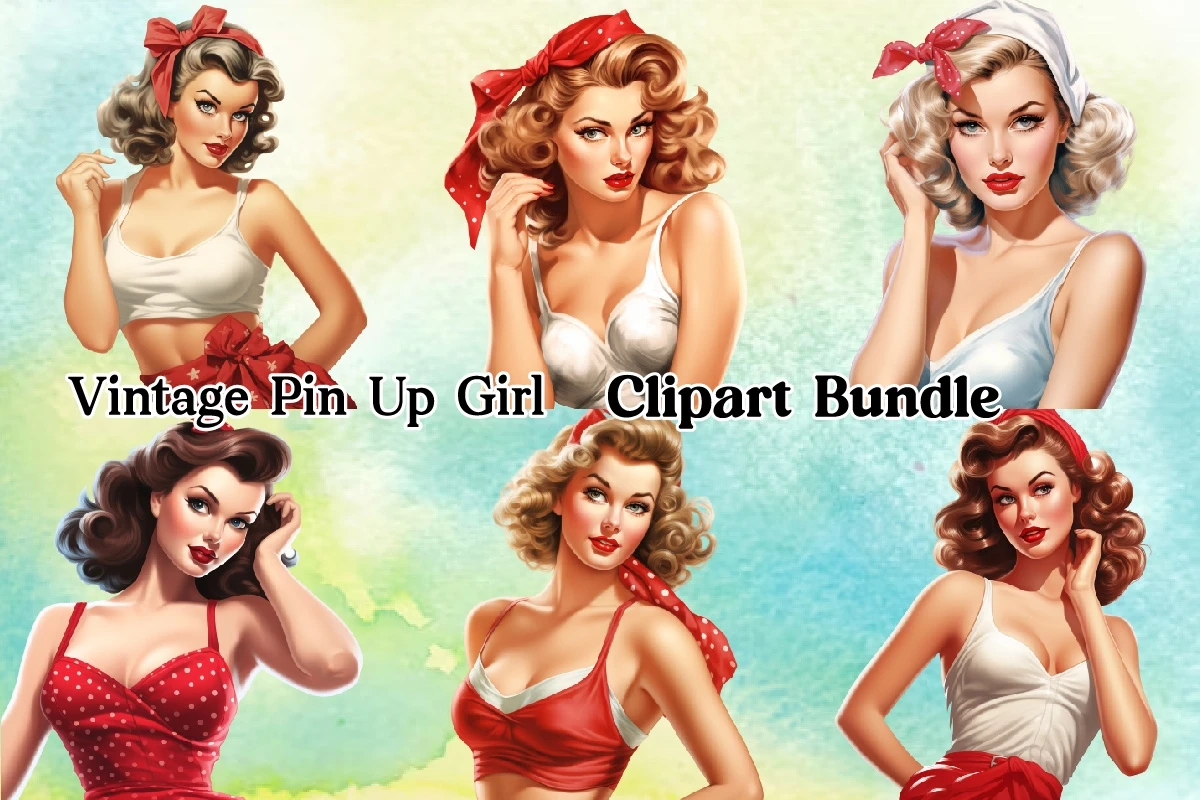 Watercolor Vintage Pin Up Girl Sublimation Design Bundle