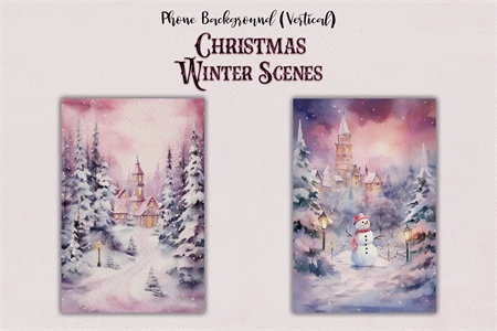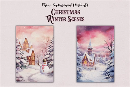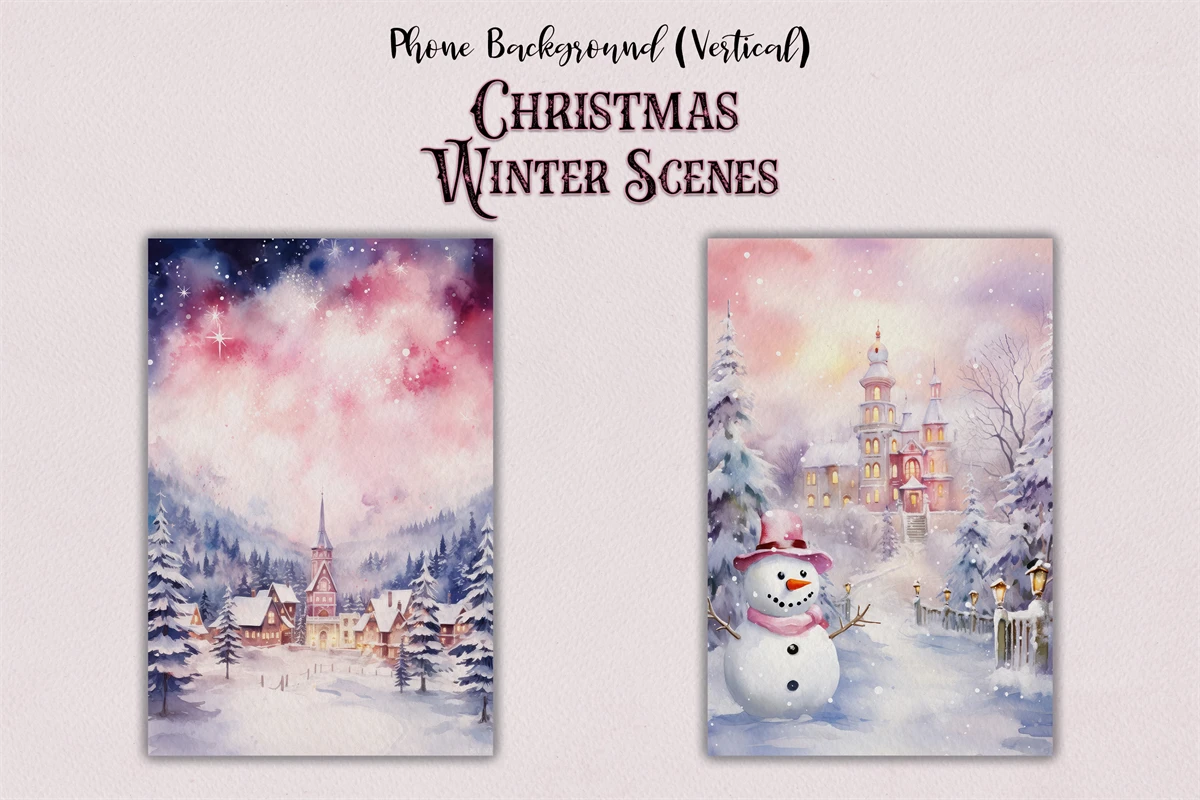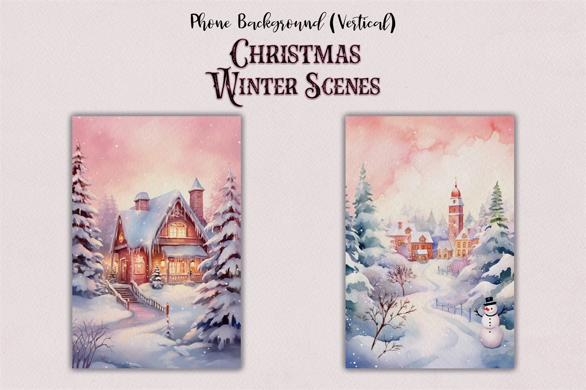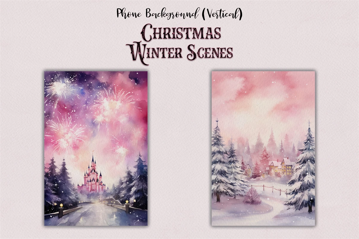 Vintage Pink Christmas Winter Scene Portrait Wallpapers.