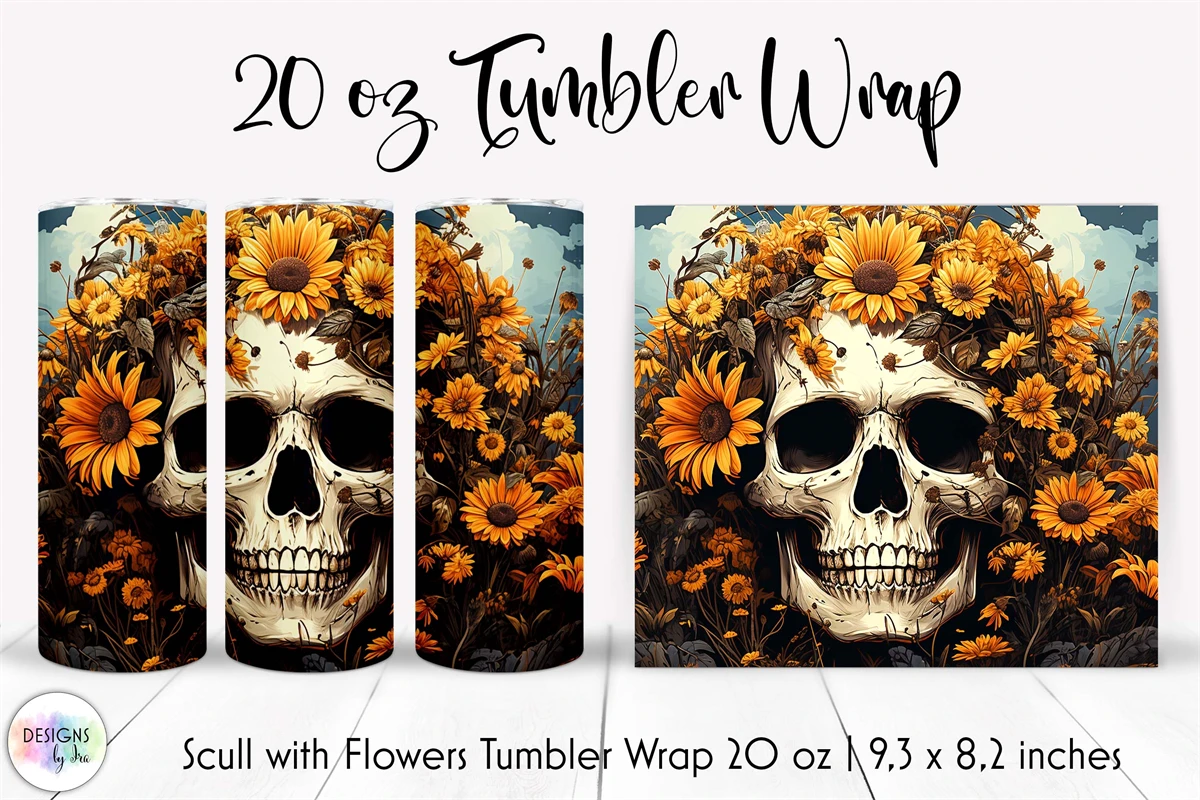 VINTAGE FLORAL SCULL TUMBLER WRAP.