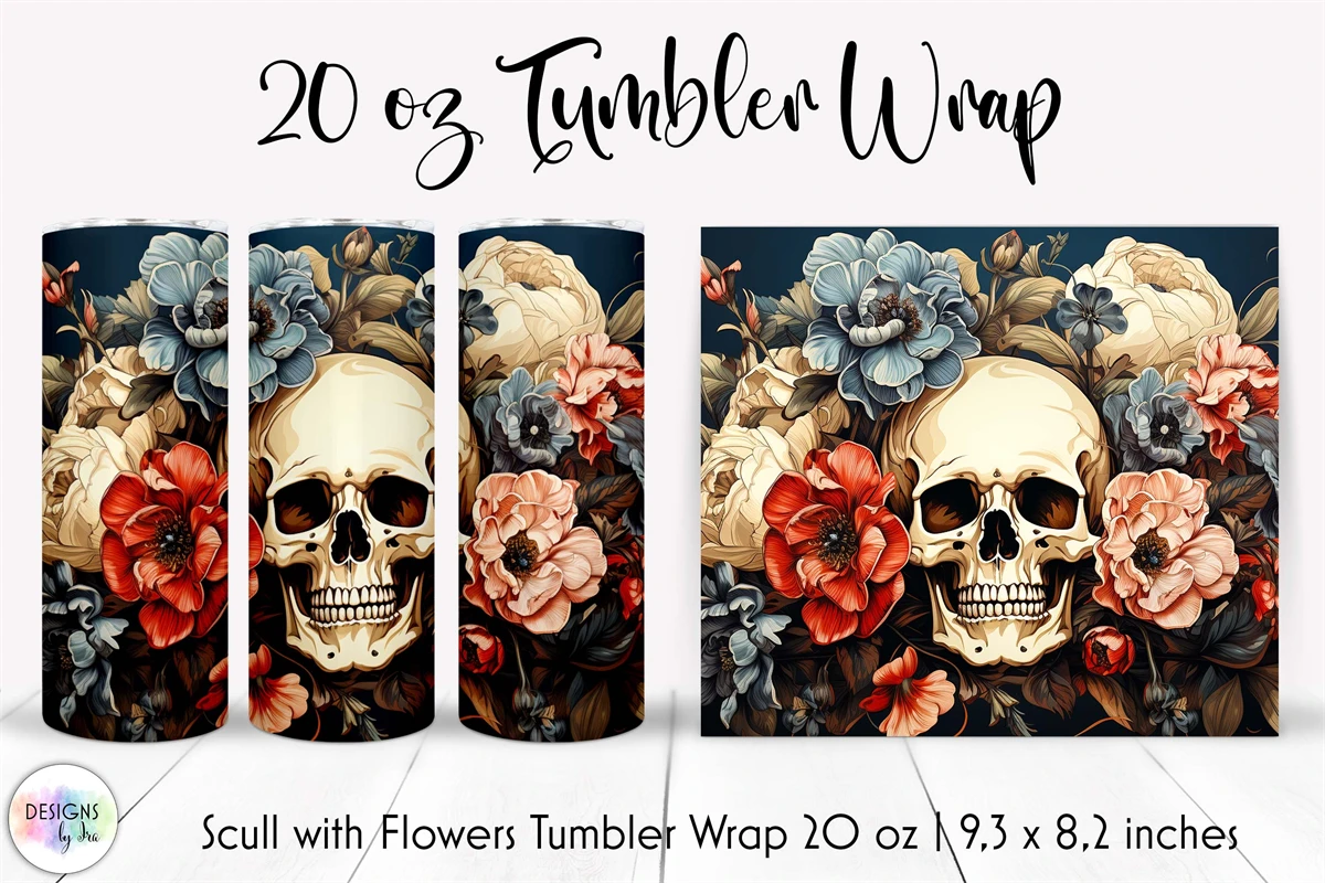 VINTAGE FLORAL SCULL TUMBLER WRAP.
