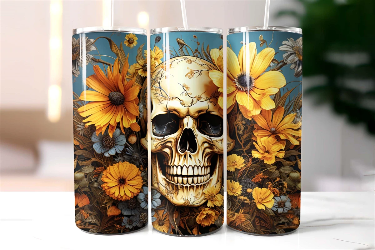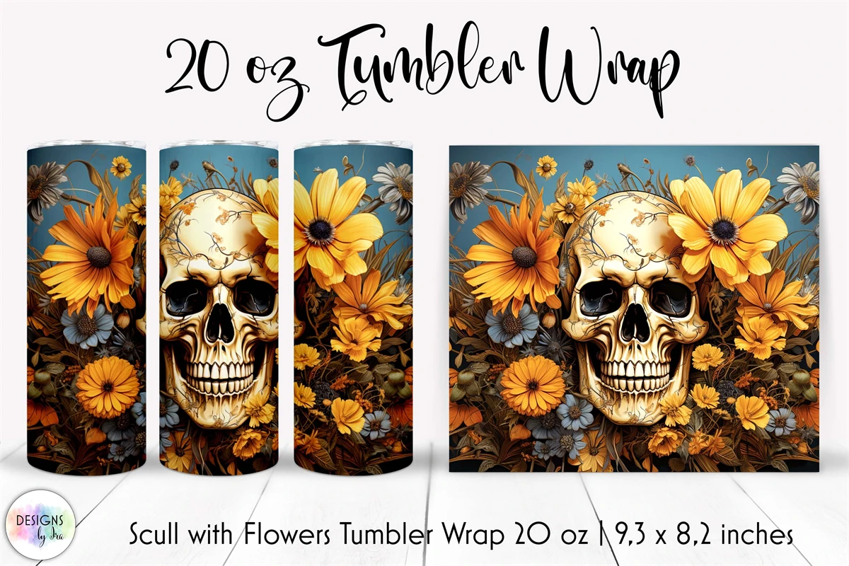VINTAGE FLORAL SCULL TUMBLER WRAP.