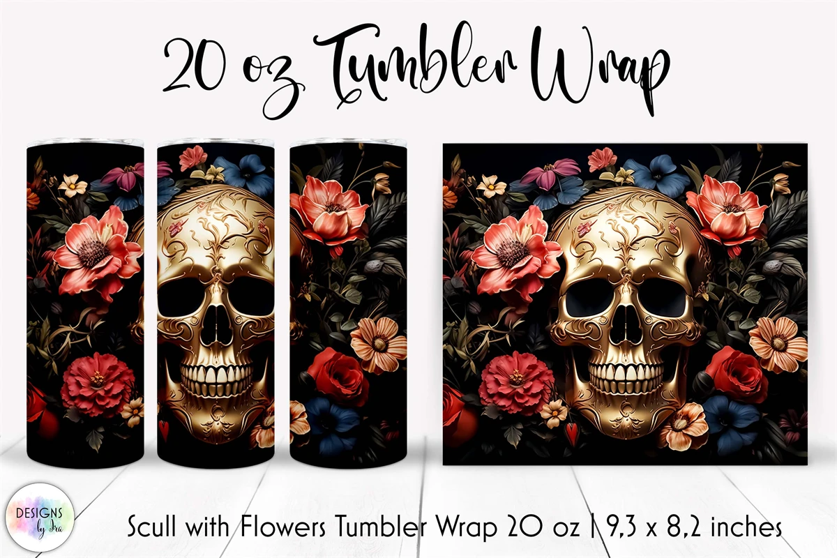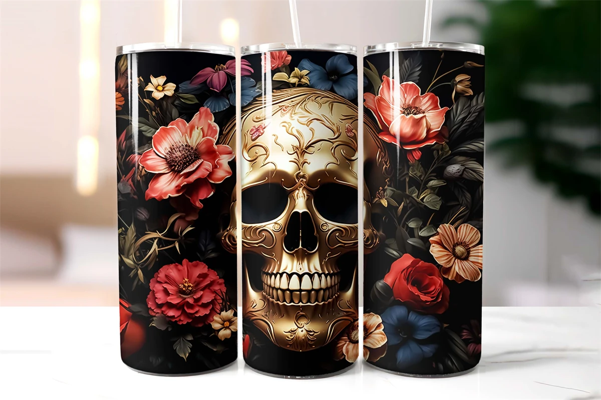 VINTAGE FLORAL SCULL TUMBLER WRAP.