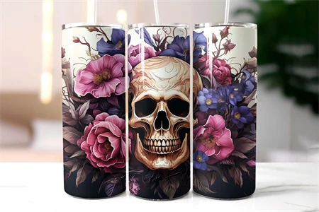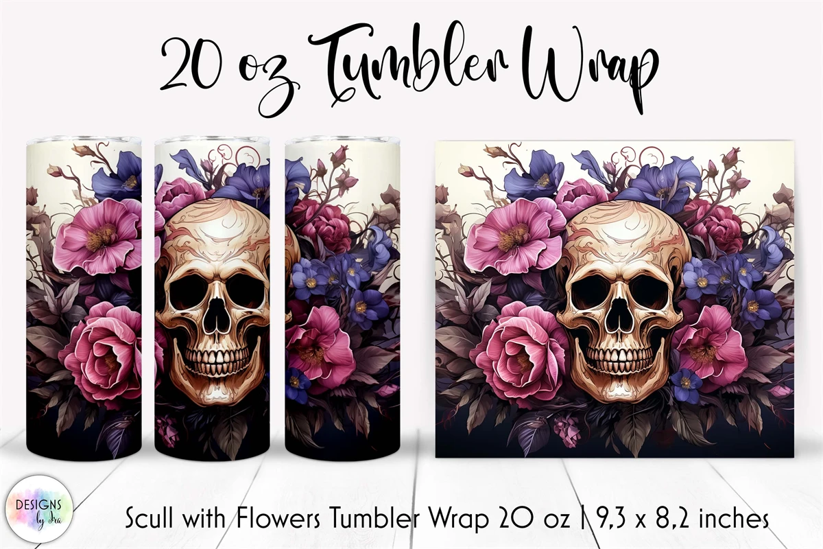 VINTAGE FLORAL SCULL TUMBLER WRAP.