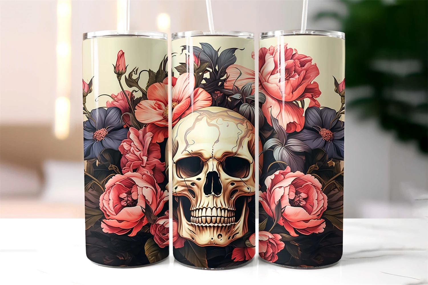 VINTAGE FLORAL SCULL TUMBLER WRAP.
