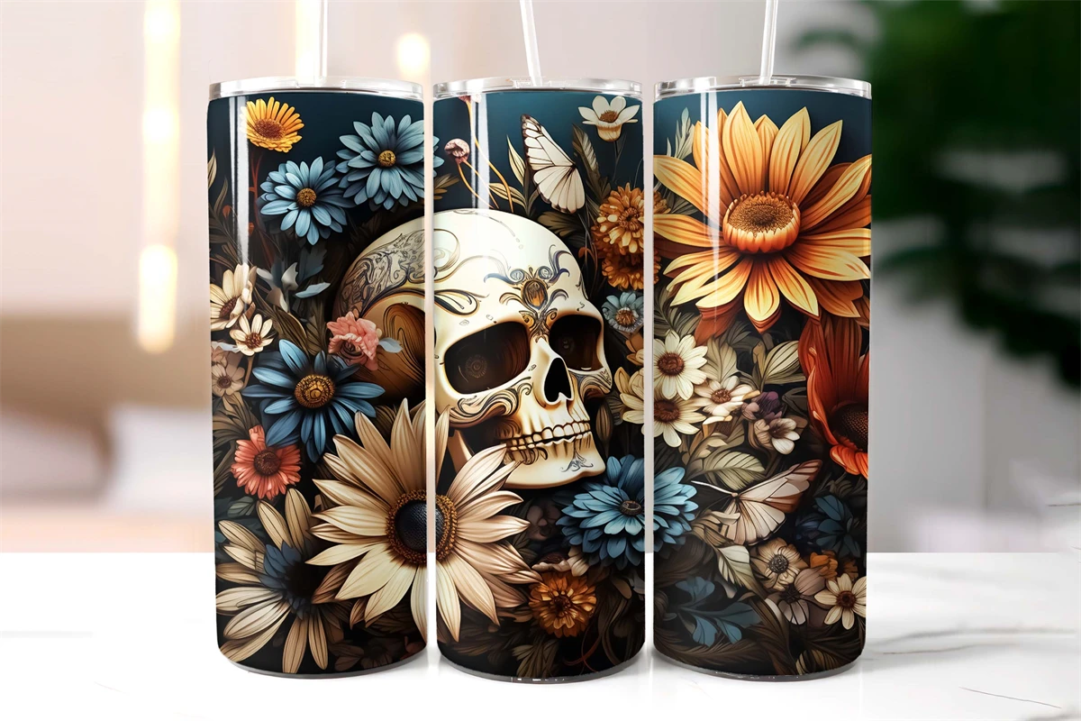 VINTAGE FLORAL SCULL TUMBLER WRAP.