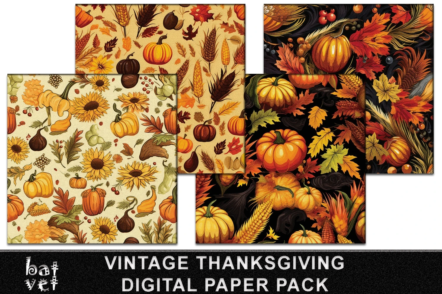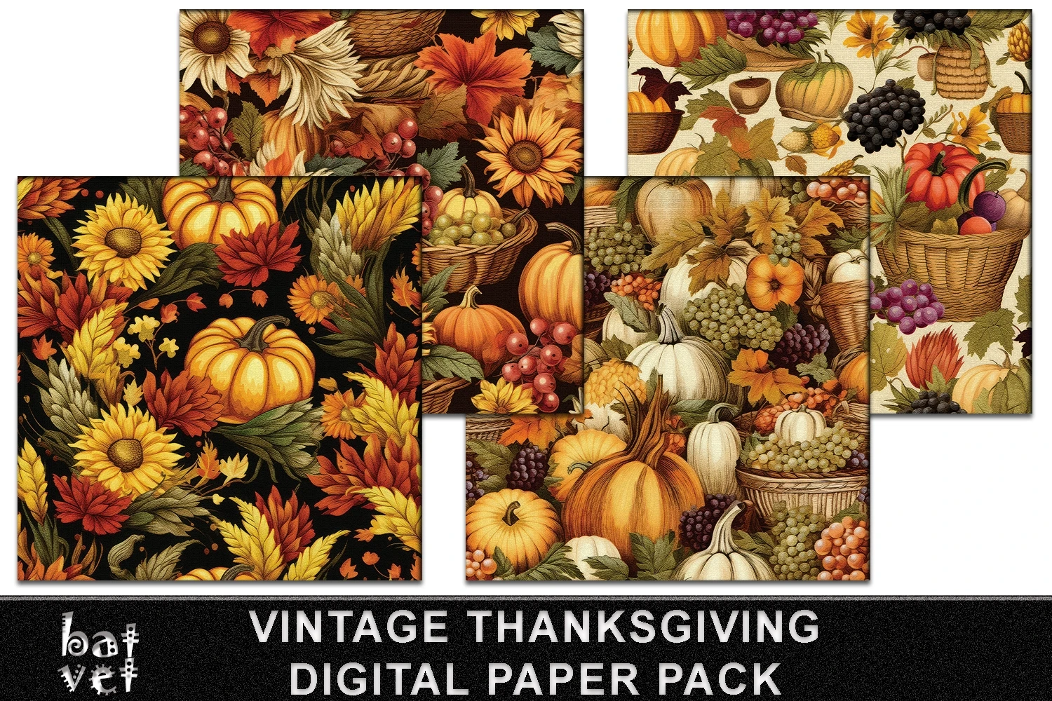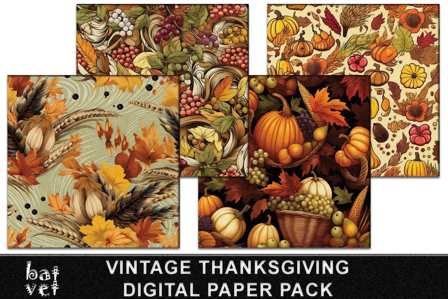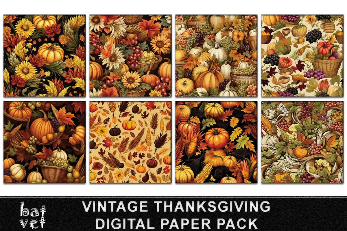 Vintage Thanksgiving Digital Paper Pack / 12 PNG Files