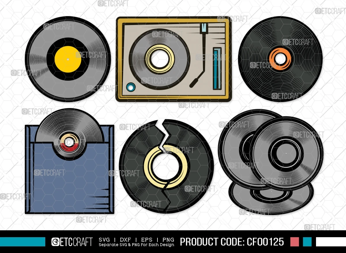 Versatile Clipart Options: Explore a diverse array of vinyl record and turntable clipart, offering creative choices for music-related projects or vintage-themed designs.