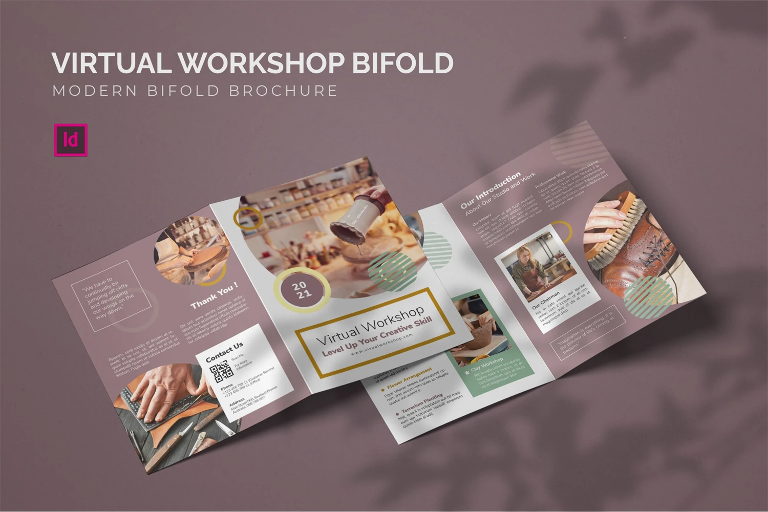 Virtual Workshop - Bifold Brochure We present this Bifold Brochure for you, simple and very elegant, and this Bifold Brochure is suitable for all types of your business, made with adobe inDesign, very easy to customize, Hope you Like it, dont forget to rate, Thanks.